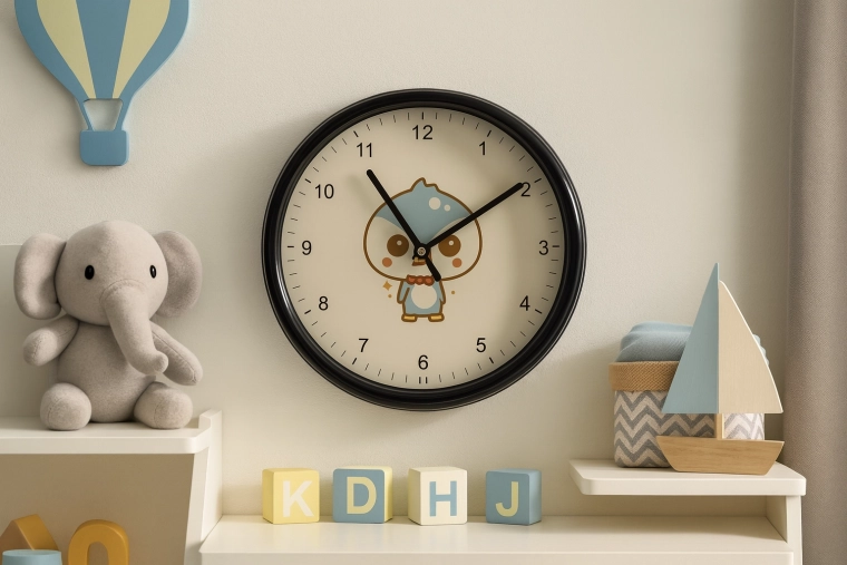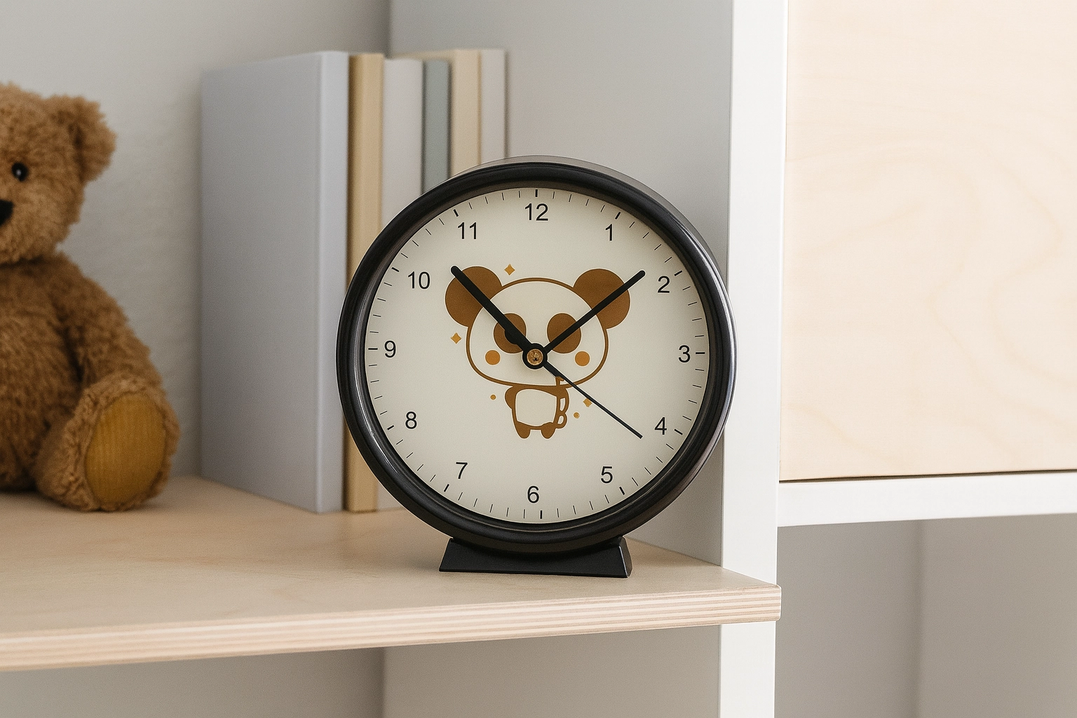Igriva zasnova z medvedkom, mačko ali pando bo polepšala otroško sobo in motivirala k učenju časa.