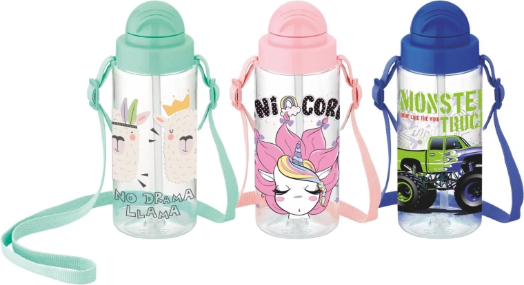 Praktična otroška steklenička s prostornino 500 ml za vsakodnevno hidracijo. Zahvaljujoč integrirani slamici in tesnemu navojnemu pokrovčku omogoča udobno pitje brez polivanja – idealna za v šolo, za šport in na potovanja. Izdelana iz odporne plastike brez BPA, lahka in enostavna za prenašanje. Na voljo v rožnati, vijolični in modri barvi.