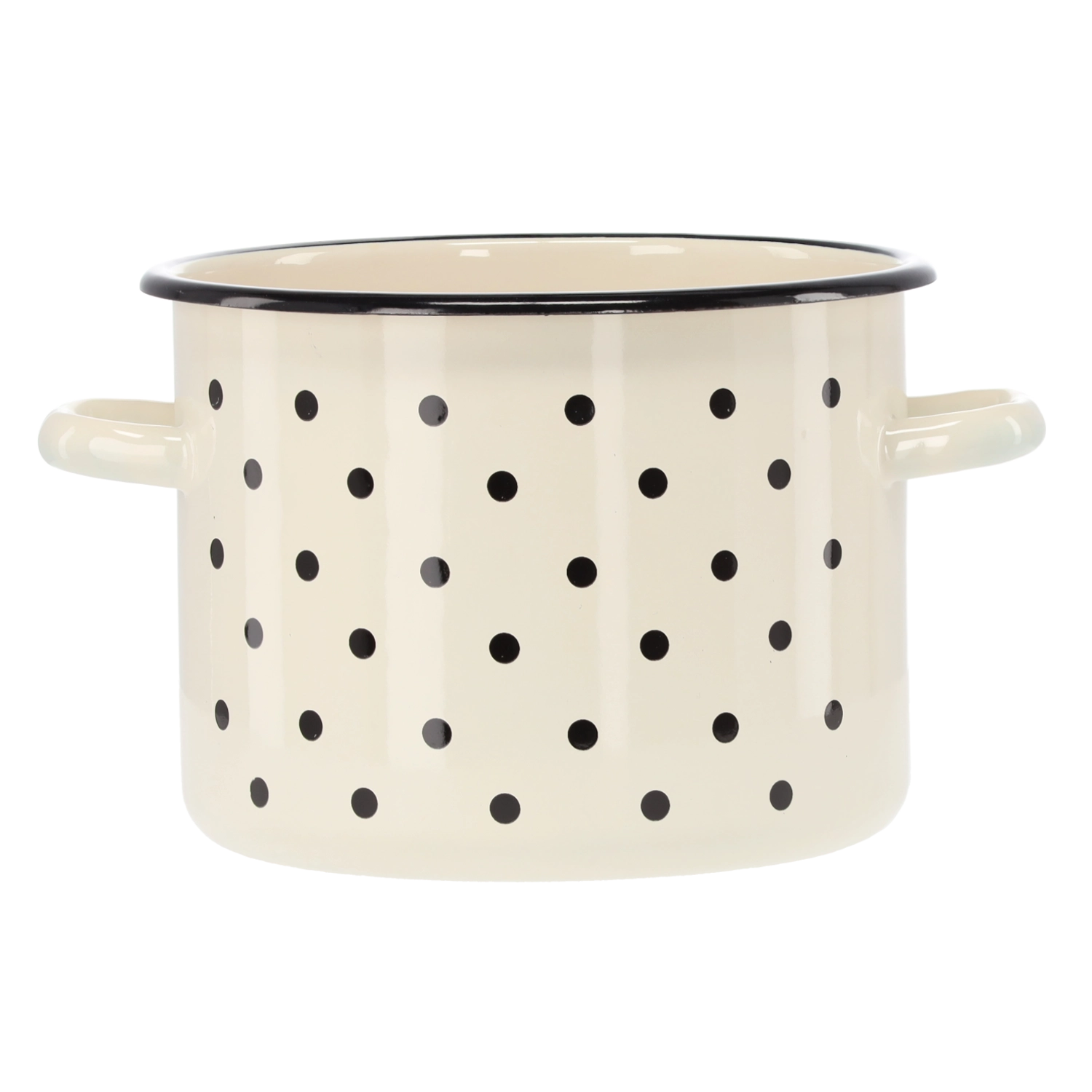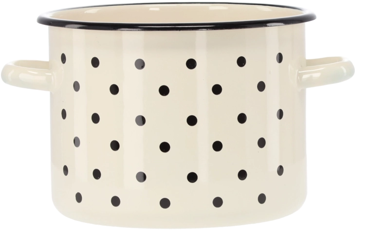 Ta praktičen emajliran lonec združuje brezčasen dizajn z visoko vzdržljivostjo. Bela barva z nežnim pikčastim vzorcem bo vaši kuhinji dodala svež videz, medtem ko kakovostna emajlirana površina zagotavlja enakomerno segrevanje in dolgo življenjsko dobo.