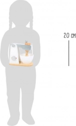 Igra s kuhinjskim robotom razvija fino motoriko, domišljijo in socialne veščine pri skupni igri. Zaradi brezčasnega lesenega dizajna se odlično poda v vsako otroško kuhinjico in omogoča dolge ure ustvarjalnega kuhanja.