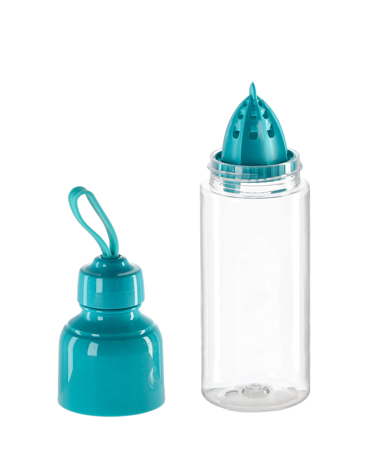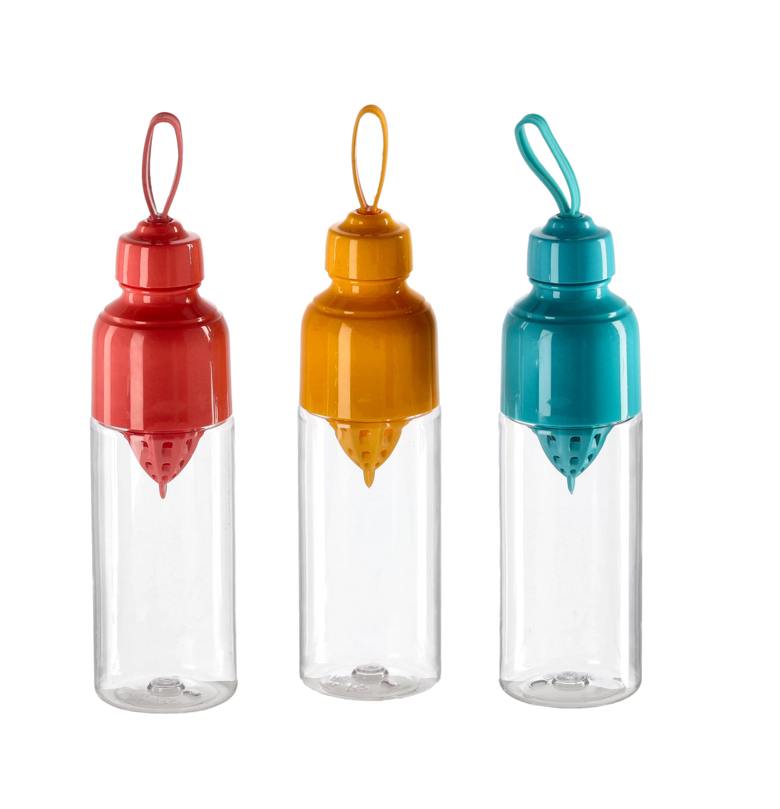 Osvežite svoj režim pitja s svežim citrusnim sokom kar v steklenici. Integriran ožemalnik za citruse omogoča hitro ožemanje in neposredno obogatitev vode z vitamini polnim sokom. Prosojno telo steklenice olajša nadzor nad vsebino, zaradi kompaktnih mer pa se zlahka prilega torbi ali nahrbtniku.