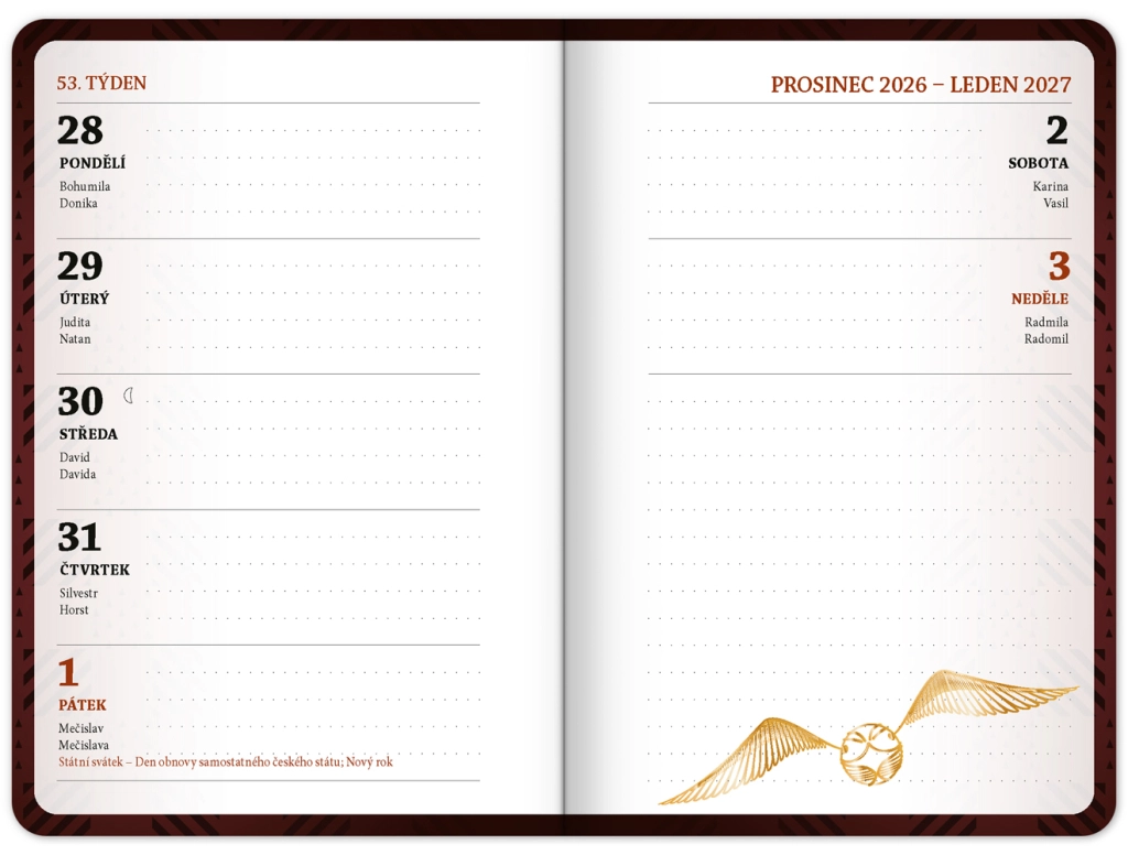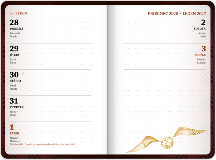 Uredite si obveznosti pri učenju in prosti čas s tem praktičnim planerjem HARRY POTTER. Zahvaljujoč pregledni razporeditvi in uporabnim študijskim plonkcem boste imeli pomembne informacije vedno pri roki. Kompaktne mere se prilegajo vsaki torbi ali nahrbtniku.