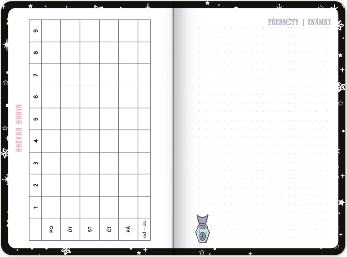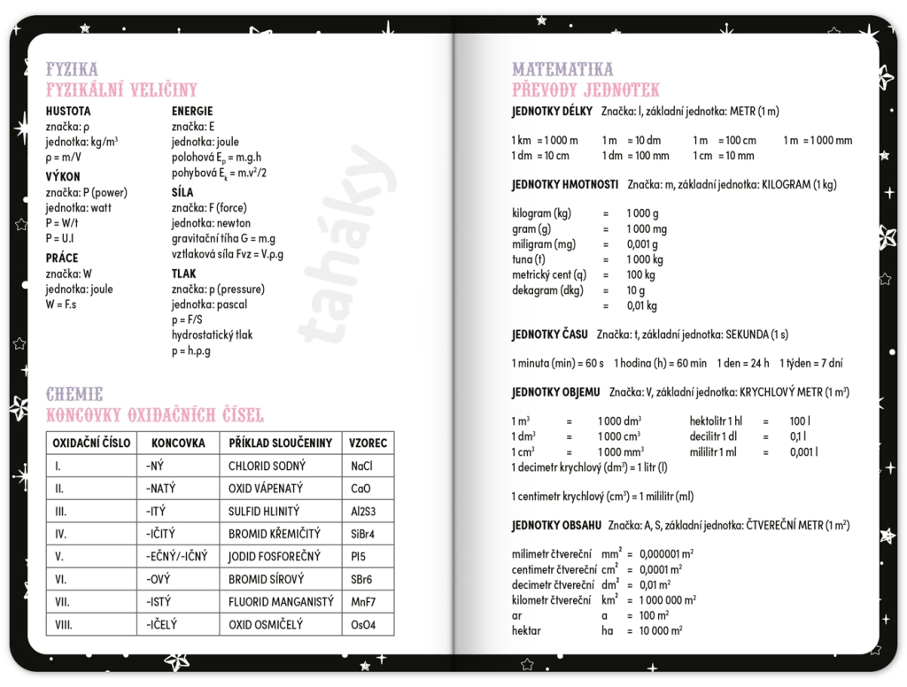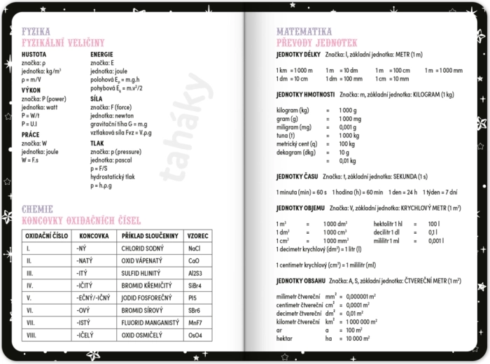 Del planerja so pametna orodja, ki vam prihranijo čas pri učenju in načrtovanju. V njem boste našli plonke iz matematike, fizike, kemije in angleščine, urnike za hitro orientacijo ter pregled terminov počitnic. Jasna razporeditev dni in tednov vam pomaga imeti pod nadzorom teste, naloge in prosti čas.