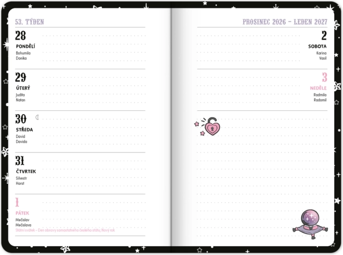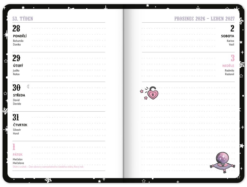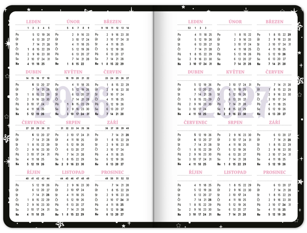 Ohranite red pri šolskih obveznostih s praktičnim študentskim planerjem z motivom KUROMI. Planer pokriva obdobje od septembra 2026 do decembra 2027, zato zlahka obvladate celotno šolsko leto in naslednji semester. Zahvaljujoč kompaktnim meram ga preprosto vzamete s seboj kamor koli – v šolo, na krožke ali domov.