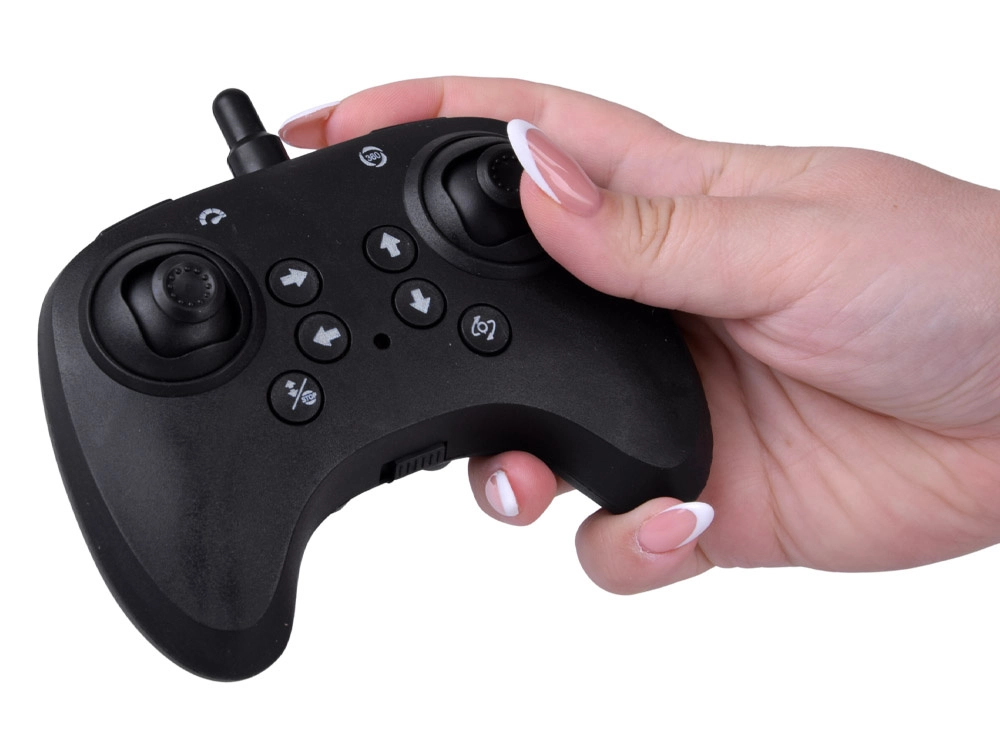 Upravljalnik v slogu igralnega ploščka omogoča natančen nadzor gibanja gor/dol, naprej/nazaj, levo/desno ter z enim gumbom sproži 360° obrate in vzlet/pristanek. Dron zmore kroženje okoli točke in tekoče zavoje, zato boste uživali v dinamičnem letu in učinkoviti akrobatiki.