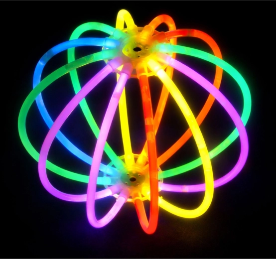 Odkrijte igrivo svetlobno atrakcijo, ki poživi vsak dogodek. Svetlečo žogo Glow Stick sestavlja 12 fluorescenčnih paličic, ki ob prepogibanju sprožijo kemijsko svetlobo in zasijejo v živih neonskih barvah. Posebni spojniki z 12 odprtinami omogočajo hitro in stabilno sestavljanje v prostorsko, geometrijsko kroglo.