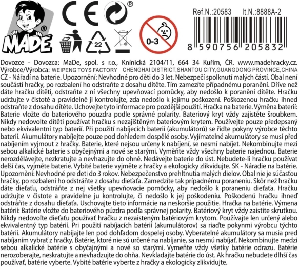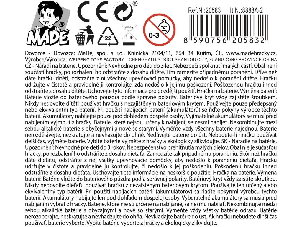 Vrtalnik je izdelan iz kakovostne plastike, zato je lahek, vzdržljiv in varen za otroško igro. Embalaža v razstavni škatli je primerna tudi kot darilo.