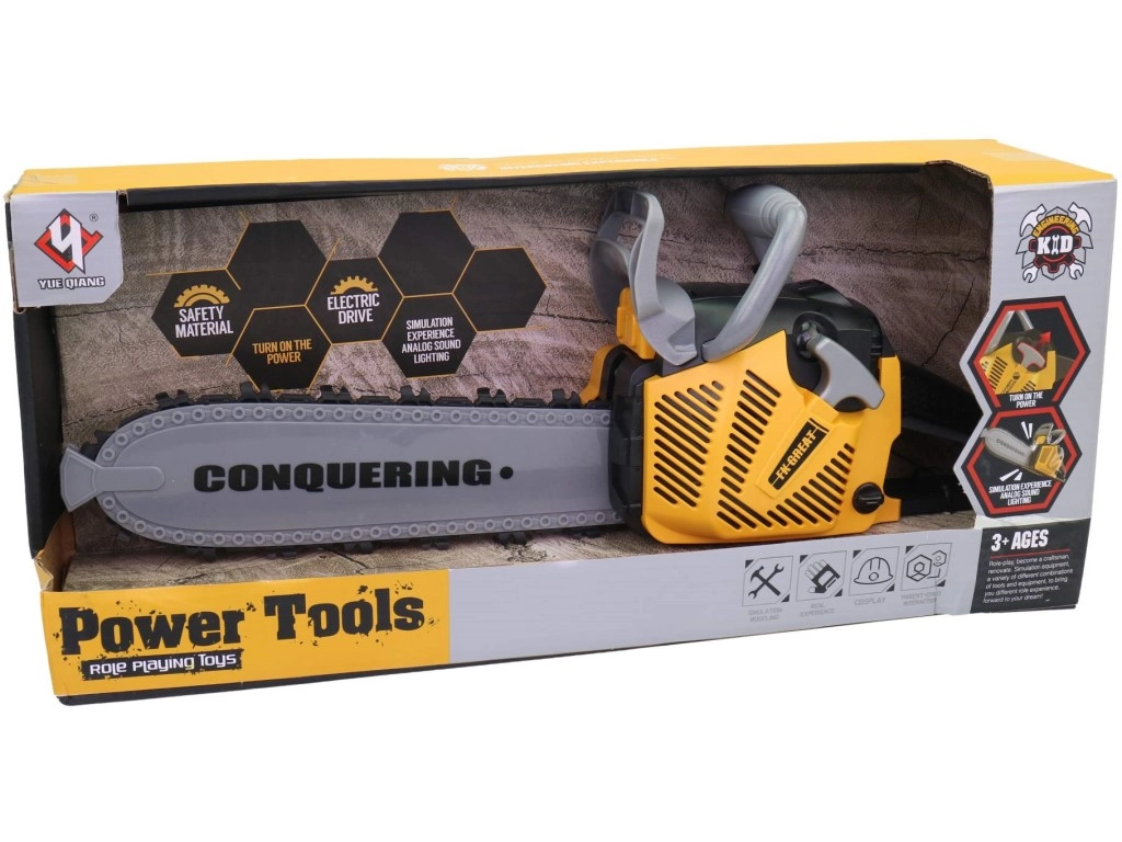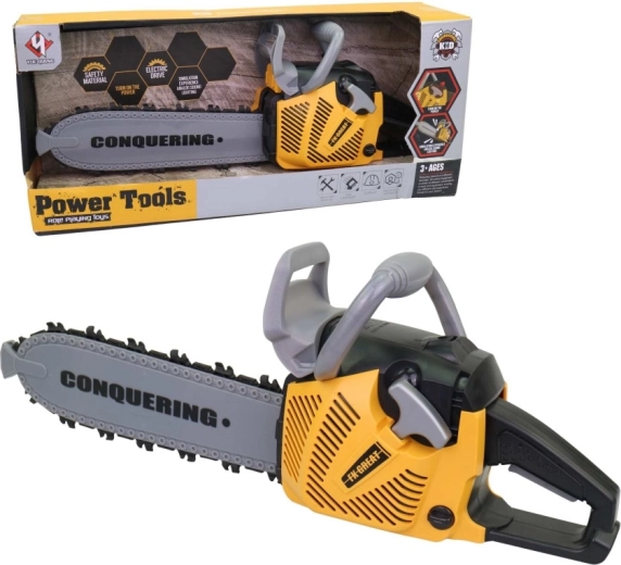 Realistična otroška motorna žaga za male mojstre ponuja svetlobne in zvočne učinke, preprosto upravljanje in varen plastičen dizajn. Idealna za fante od 3 let, ki radi posnemajo delo odraslih. Zaradi velikosti 42 cm deluje kot prava in prinaša veliko zabave pri igri na gradbišče in v delavnici.