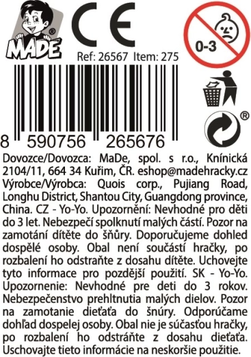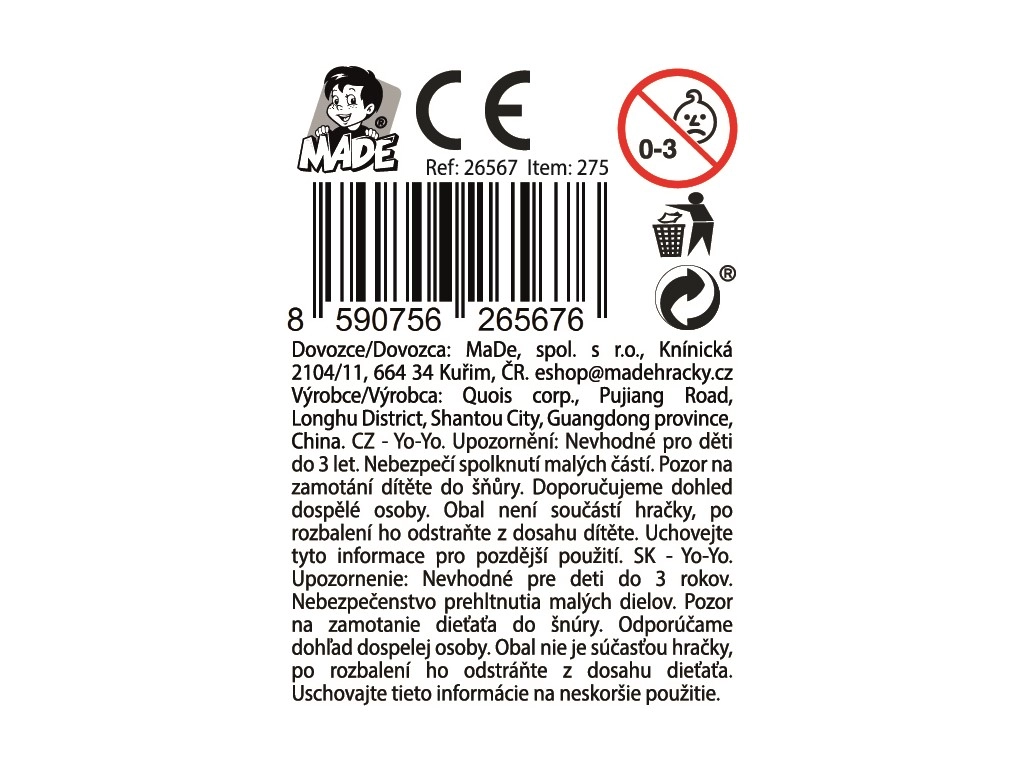 Zaradi lahke in čvrste plastike jojo lepo leži v roki in brez težav prenese vsakodnevno igro. Pisane barve spodbujajo vadbo koordinacije in fine motorike, skupna igra pa razvija tekmovalnost in timski duh.