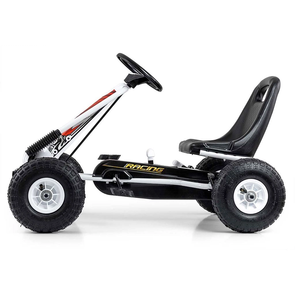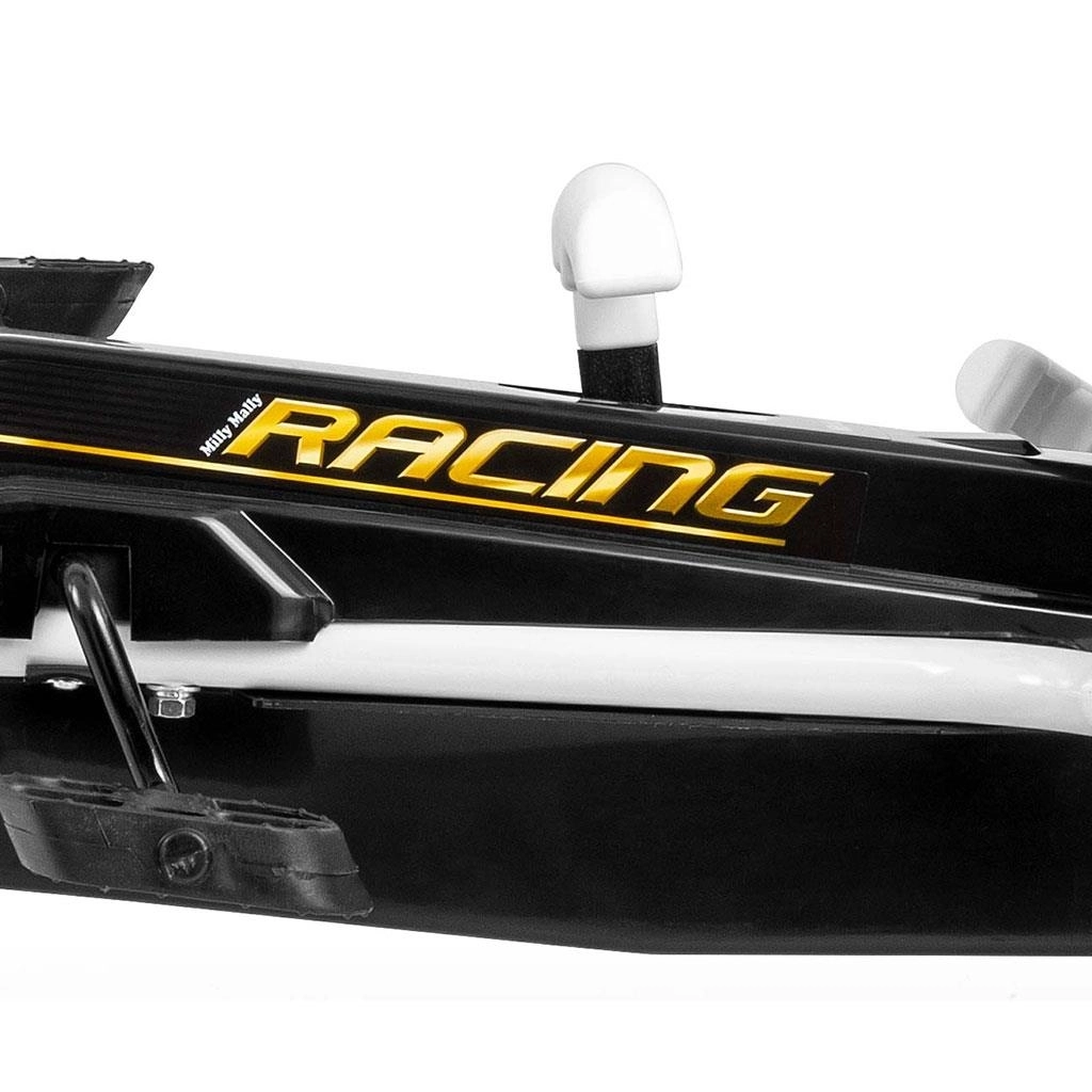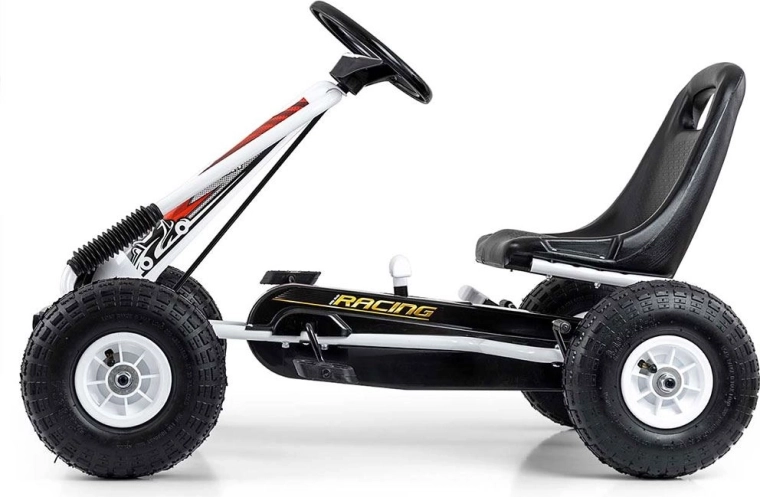 Go-kart MILLY MALLY Thor je odlična izbira za male dirkače, stare 3–8 let. Lažka, a čvrsta kovinska konstrukcija s plastičnimi ščitniki zagotavlja športen videz in vzdržljivost. Zahvaljujoč velikim pnevmatikam z izrazitim profilom je vožnja stabilna in udobna na asfaltu, tlakovcih in utrjenih poteh.