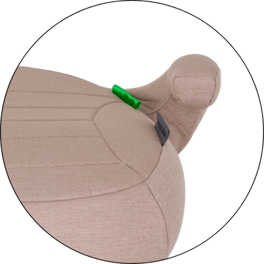 Zaradi lahke in kompaktne zasnove je jahač enostavno prenašati in hitro nameščati v različnih avtomobilih. Povišana naslona za roke pomagata voditi pas v pravilni položaj, s čimer podpirata varnost in stabilno sedenje. Sodoben videz v odtenku tan brown se poda k večini notranjosti.