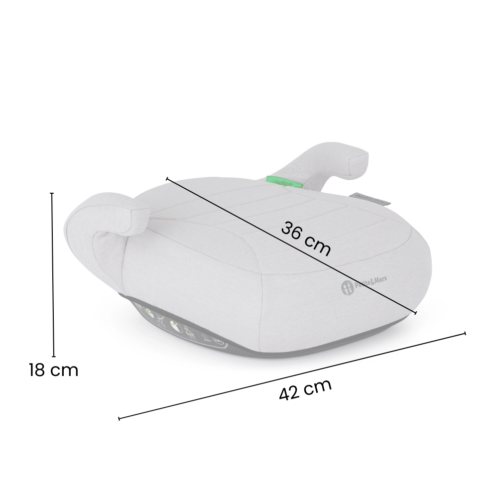 Jahač Petite&Mars Zuno je idealna izbira za starejše otroke, ki ne potrebujejo več naslonjala za hrbet, vendar še vedno zahtevajo pravilno vodenje varnostnega pasu. Namestitev v smeri vožnje in uporaba 3-točkovnega pasu vozila zagotavljata varno sedenje, medtem ko mehka prevleka in premišljena oblika povečujeta potovalno udobje.
