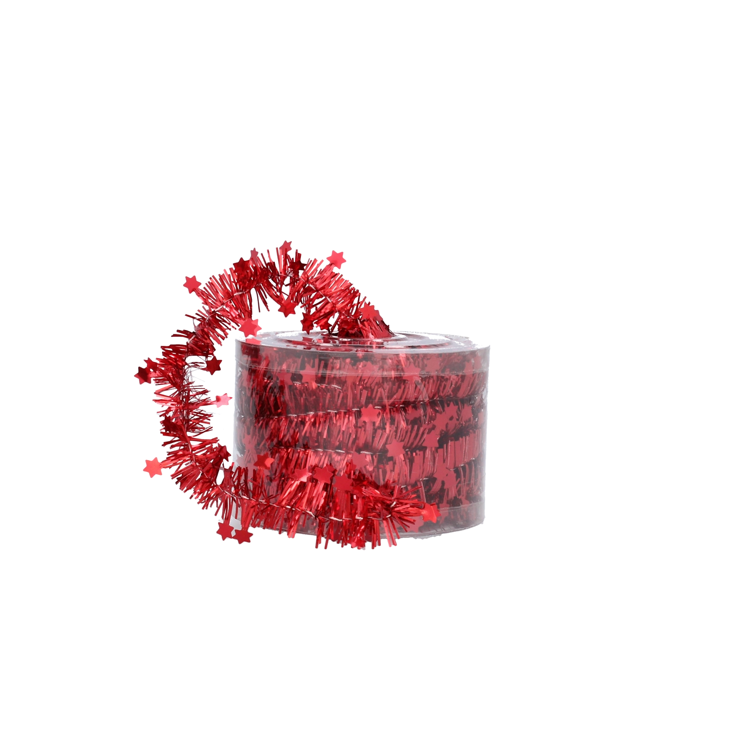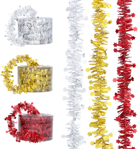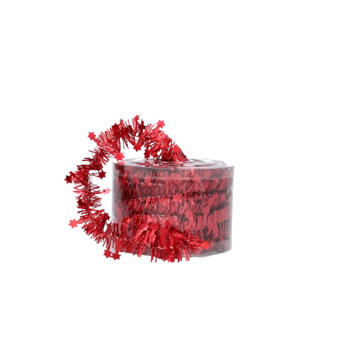 Lahek in prožen material se preprosto oblikuje, ne pada in ostane tam, kjer ga potrebujete. Kovinske resice lepo odbijajo svetlobo žarnic in svečk, zvezdice pa dekorju dodajo igrivost in praznično čarobnost. Izbirajte med rdečo za izrazit poudarek, zlato za topel razkošen pridih ali srebrno za moderen leden sijaj.