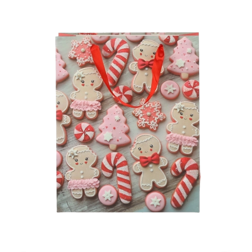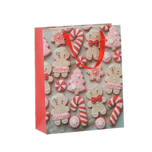 Stilsko božično pakiranje brez skrbi. Darilne vrečke z motivom medenjakov in prazničnih piškotov podarijo vsakemu darilu očarljiv sezonski videz. Kakovosten papir z gramatura 157 g/m² zagotavlja odlično trdnost, zato vsebina varno prispe k obdarovancu.