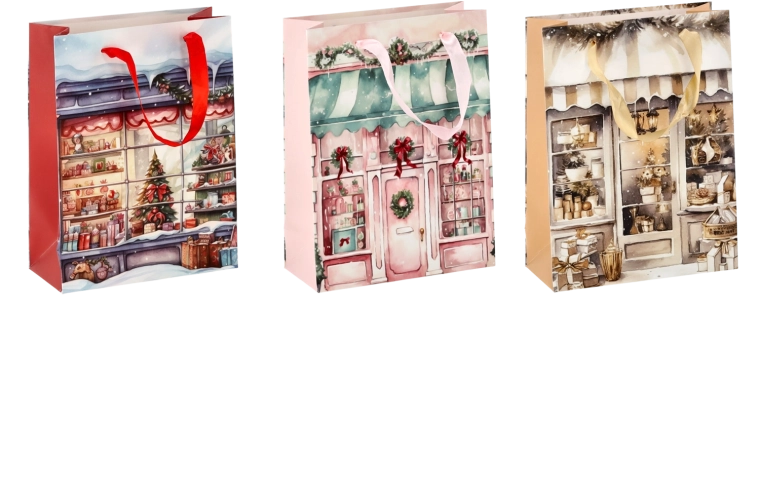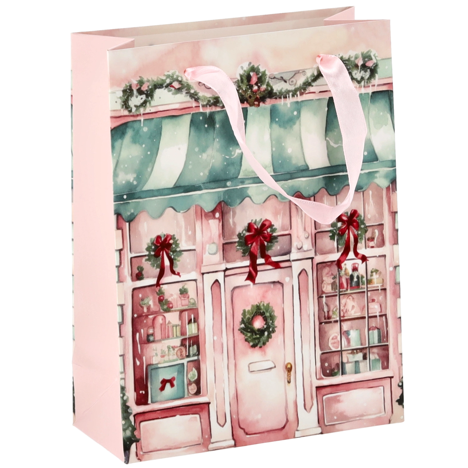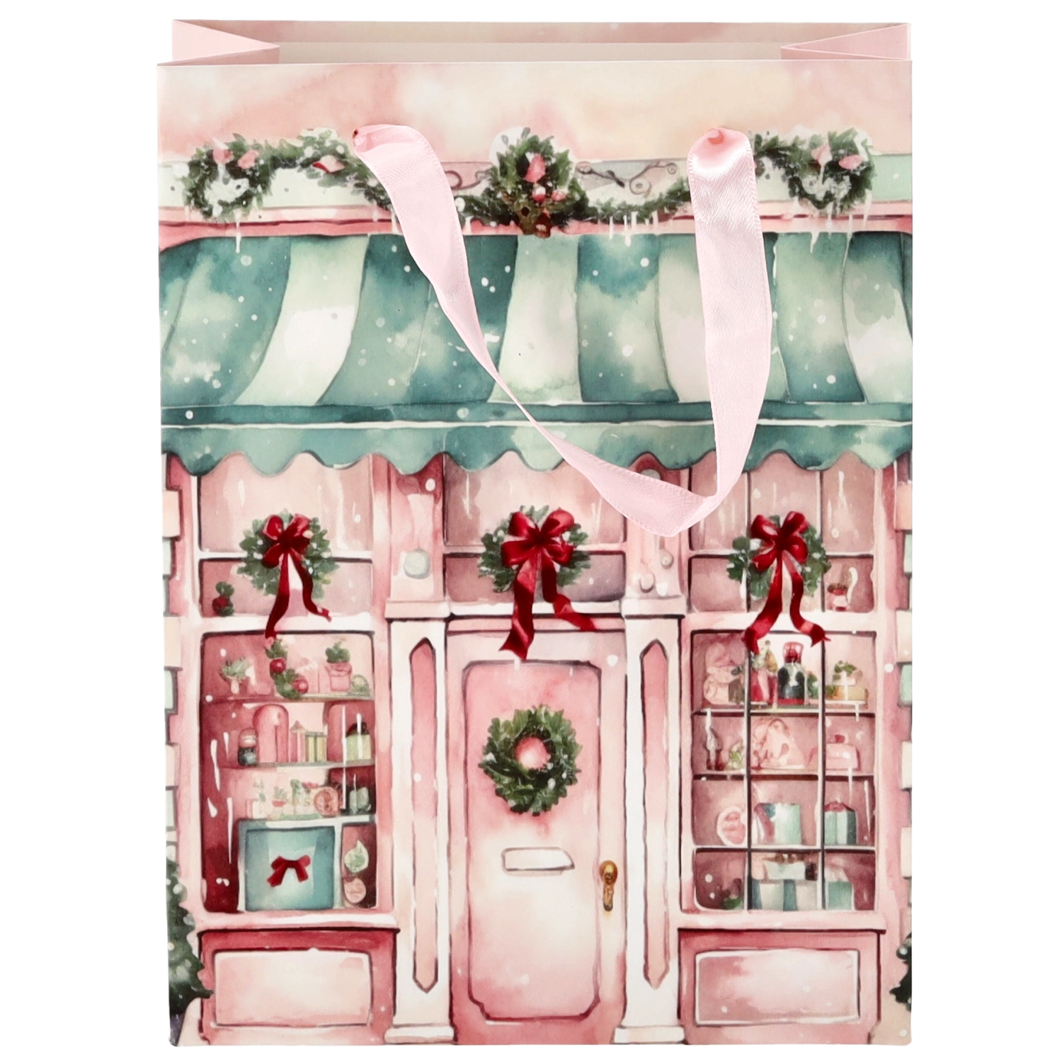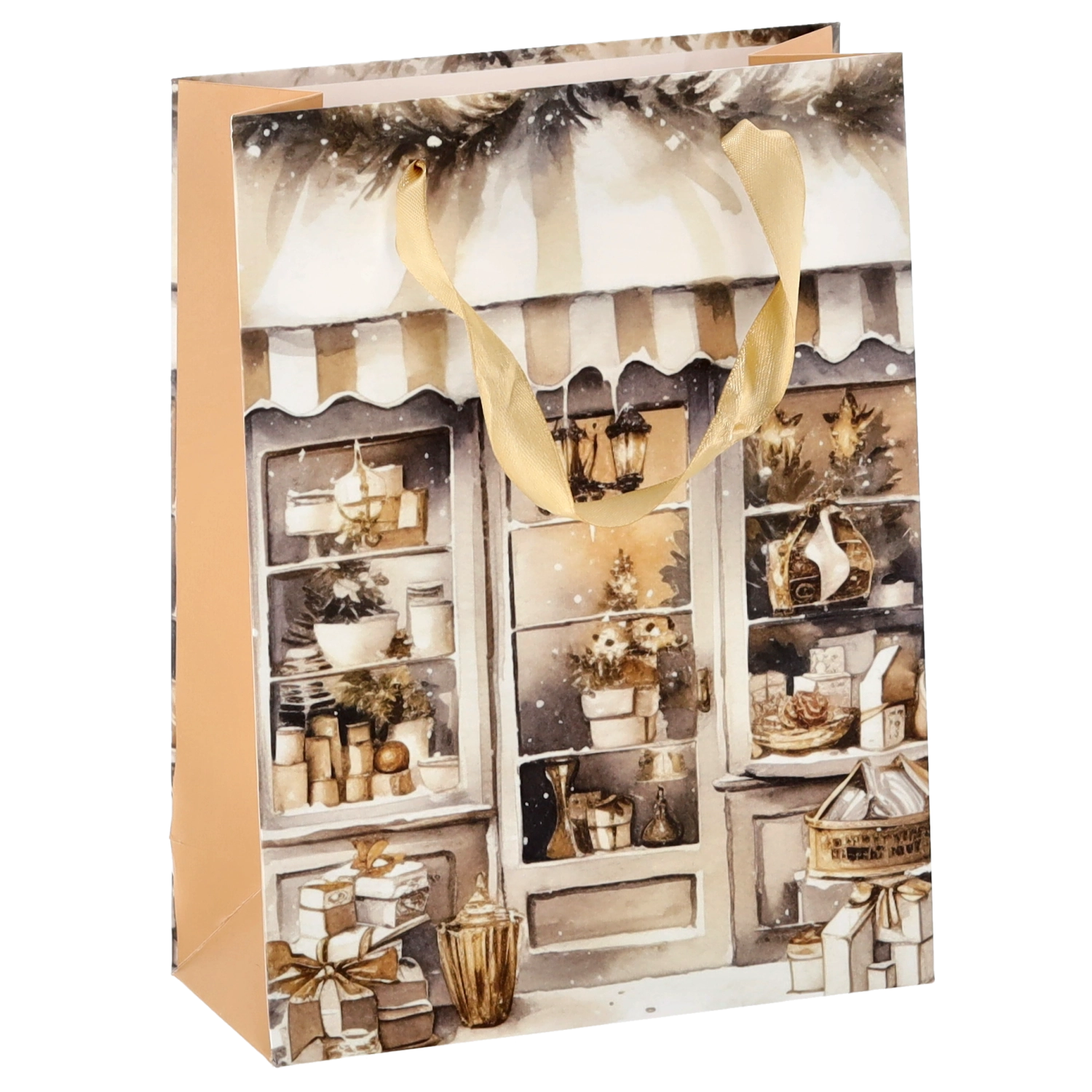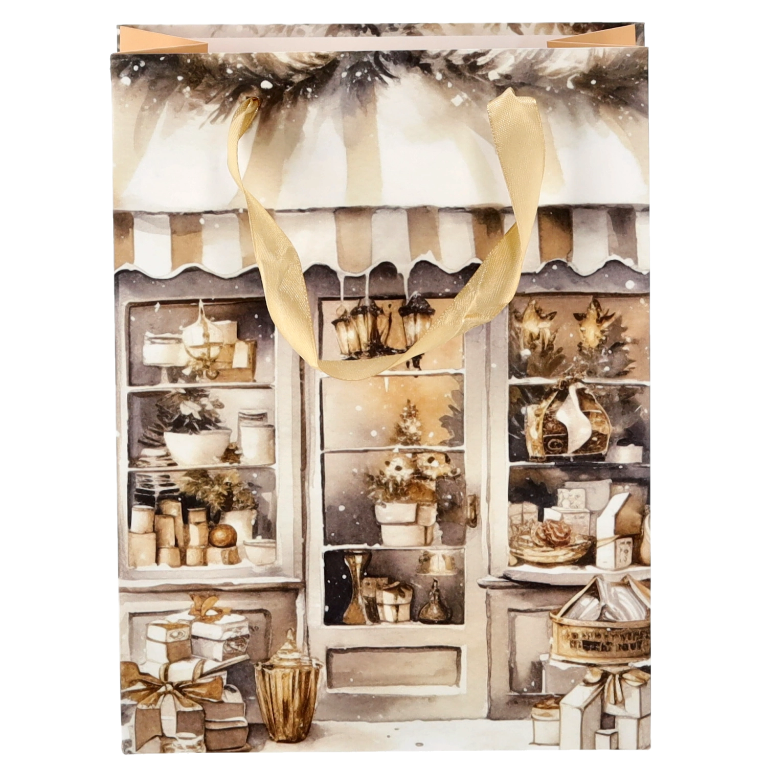 Spremenite zavijanje darila v pravo doživetje. Ta božična vrečka z ilustracijo hišice v tradicionalnem slogu je idealna izbira za praznično obdobje. Zaradi kompaktnih, a prostorno zasnovanih mer zlahka sprejme knjige, kozmetiko, sveče ali manjše komplete daril.