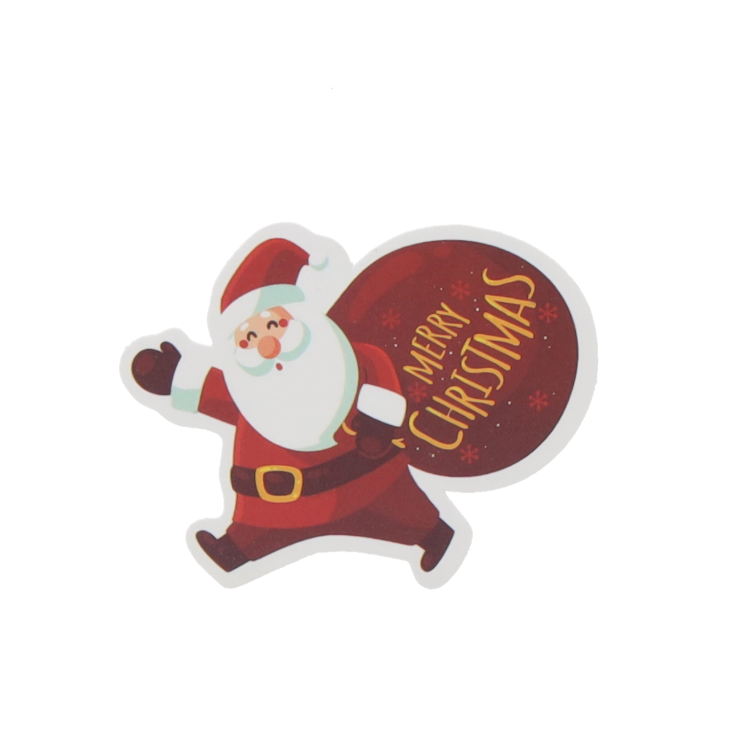 V pakiranju je mešanica nalepk s prazničnimi motivi: Božiček, snežak, božično drevo in napisi Merry Christmas za prepričljiv učinek.