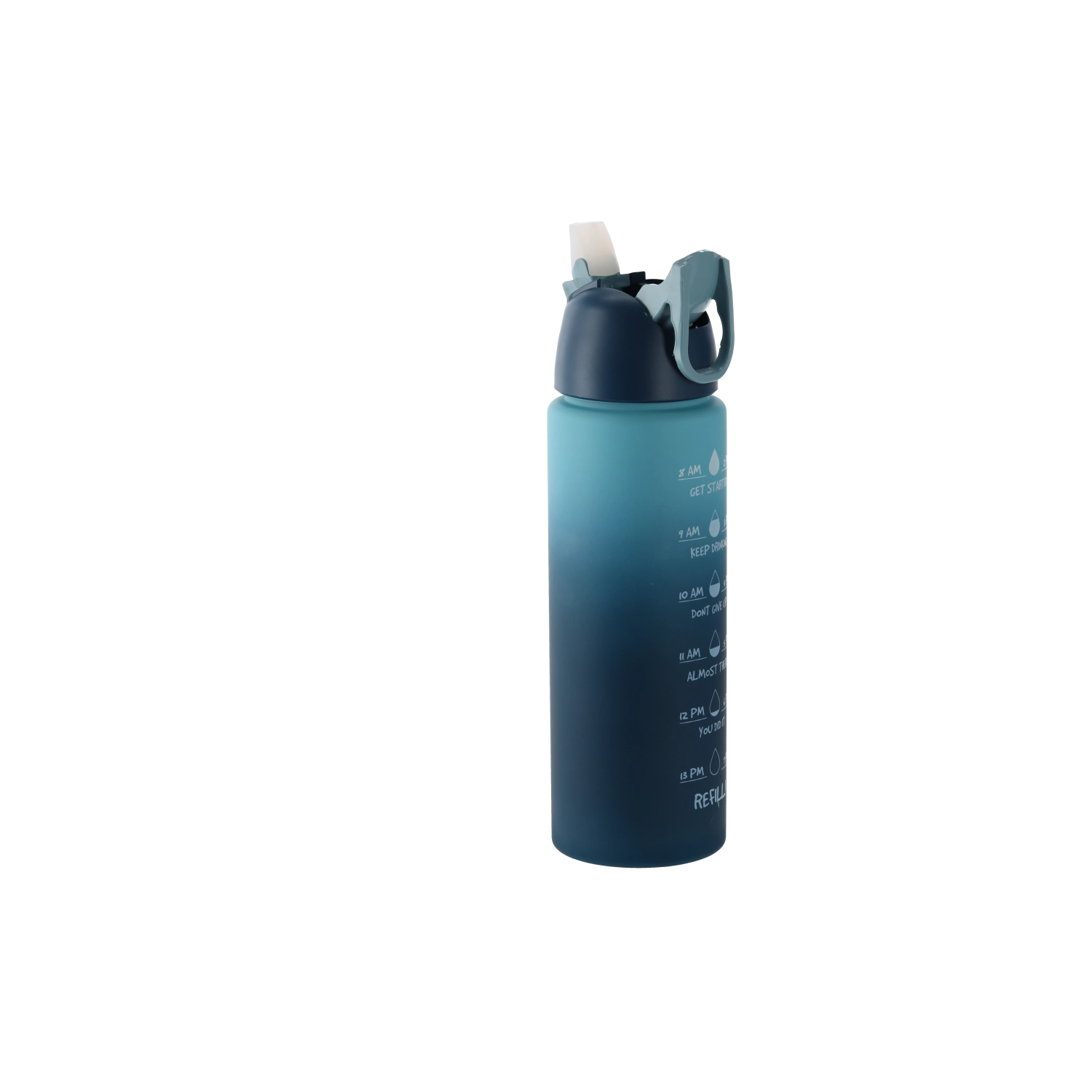 Praktična športna steklenica s prostornino 700 ml iz trpežne PC plastike vam pomaga ohranjati hidracijo skozi ves dan. Zahvaljujoč časovnim oznakam in motivacijskim opomnikom imate pregled nad vnosom tekočine, pokrovček na preklop z varovalom zagotavlja tesnjenje brez puščanja, pašček za prenašanje pa olajša vsakodnevno uporabo doma, v službi in v fitnesu.