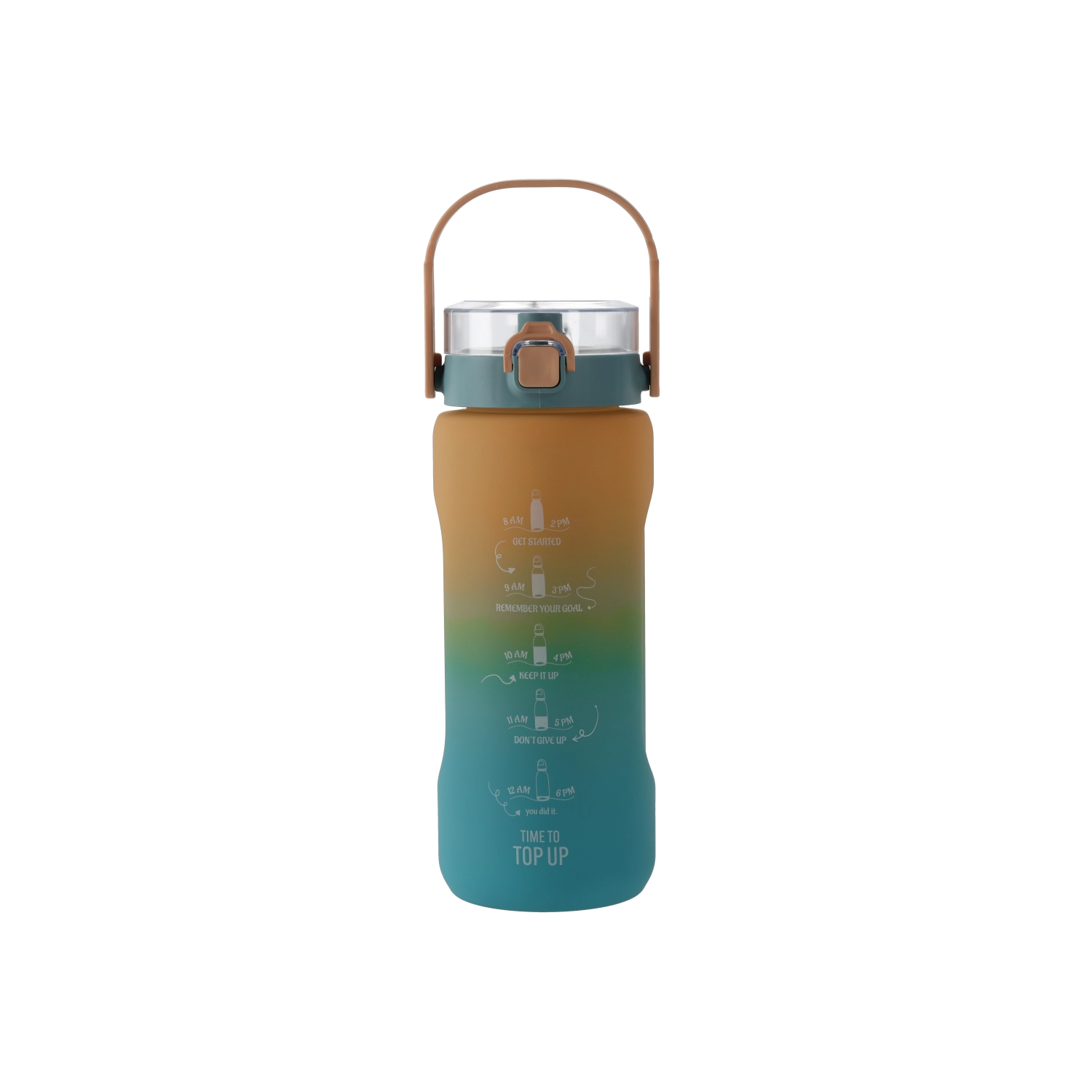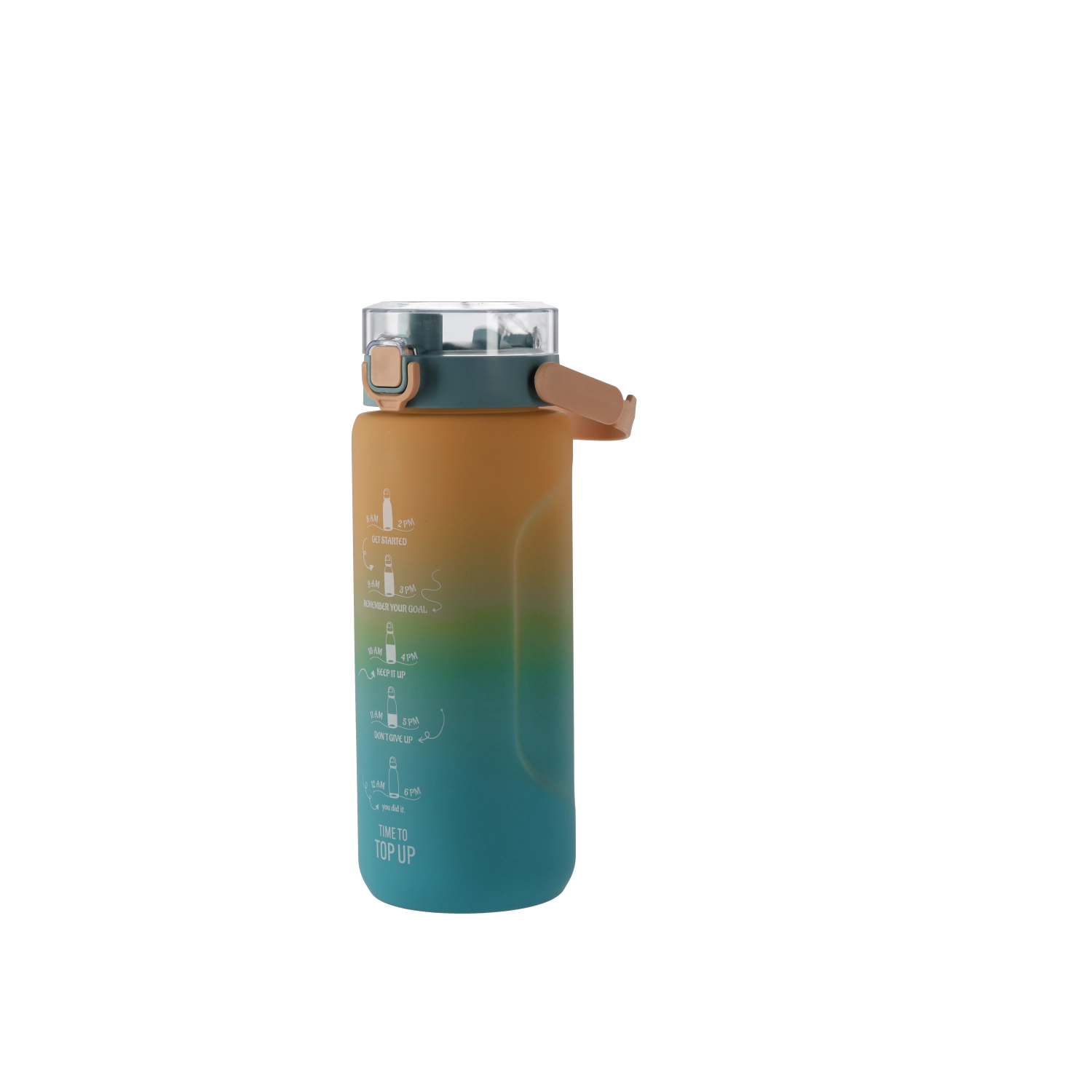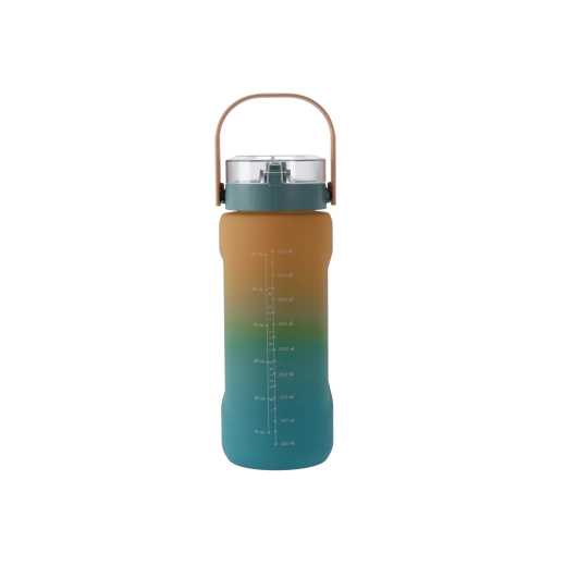 Ta steklenica za vodo z veliko prostornino (2000 ml) združuje sodoben videz s praktičnimi podrobnostmi za preprosto vsakodnevno uporabo. Prehod med temno in svetlo modro barvo zagotavlja privlačen slog, medtem ko je robusten PC material lahek, trpežen in primeren za pogosto nošenje.