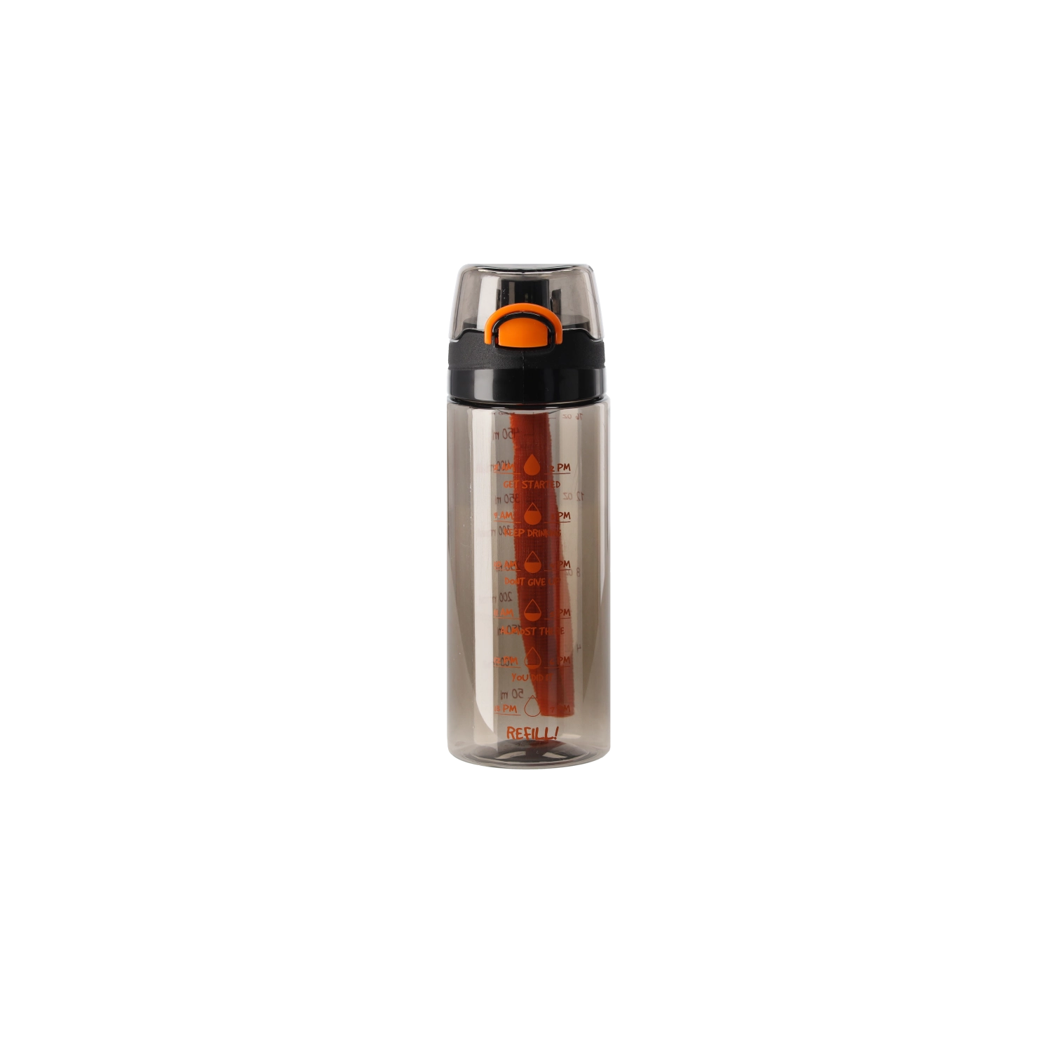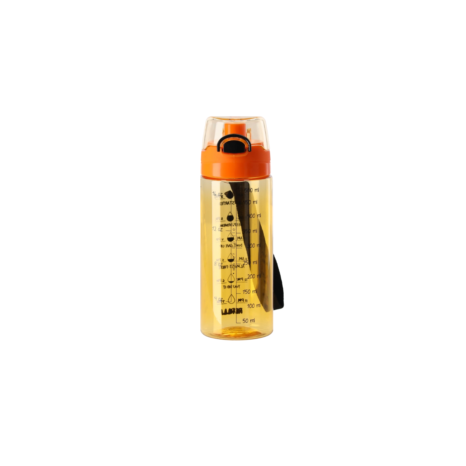 Praktična steklenica za vodo s prostornino 500 ml iz odpornega PC materiala za vsakodnevno hidracijo. Na ohišju so merilne črtice in grafični vzorci, ki pomagajo spremljati vnos tekočine. Zaradi lahke in trpežne zasnove je idealna za v službo, šolo in za šport.