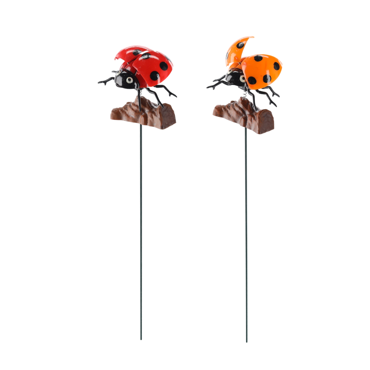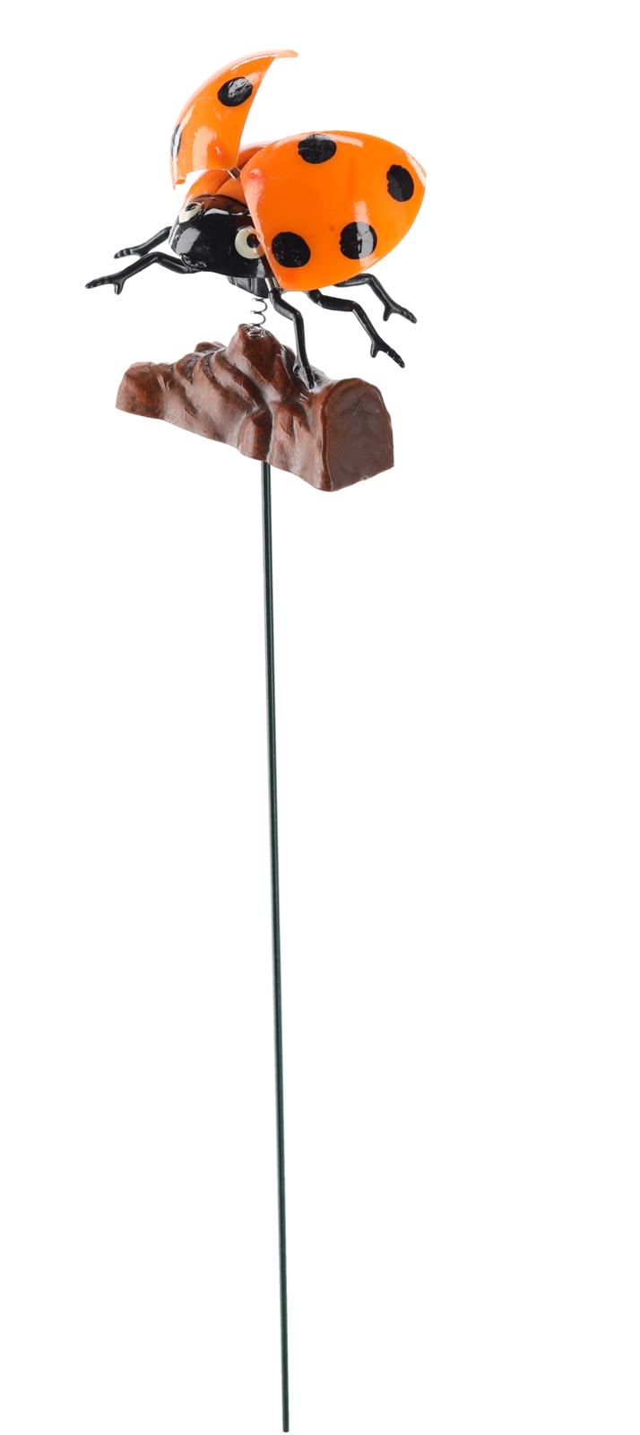 Stabilna kovinska palčka zagotavlja čvrsto sidranje v zemlji in odpornost na vremenske vplive. Okrasek je idealen za vrtove, terase, balkone in notranje lončnice. Miks barv omogoča preprosto usklajevanje dekorja z vašo zasaditvijo.