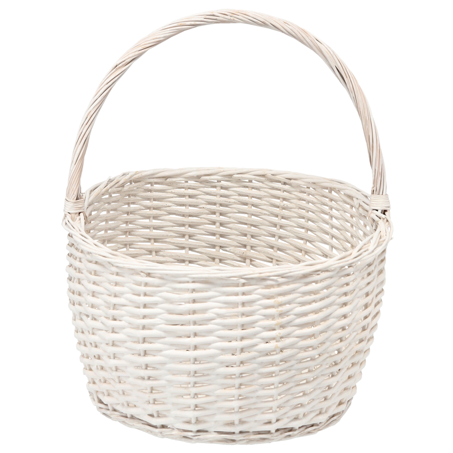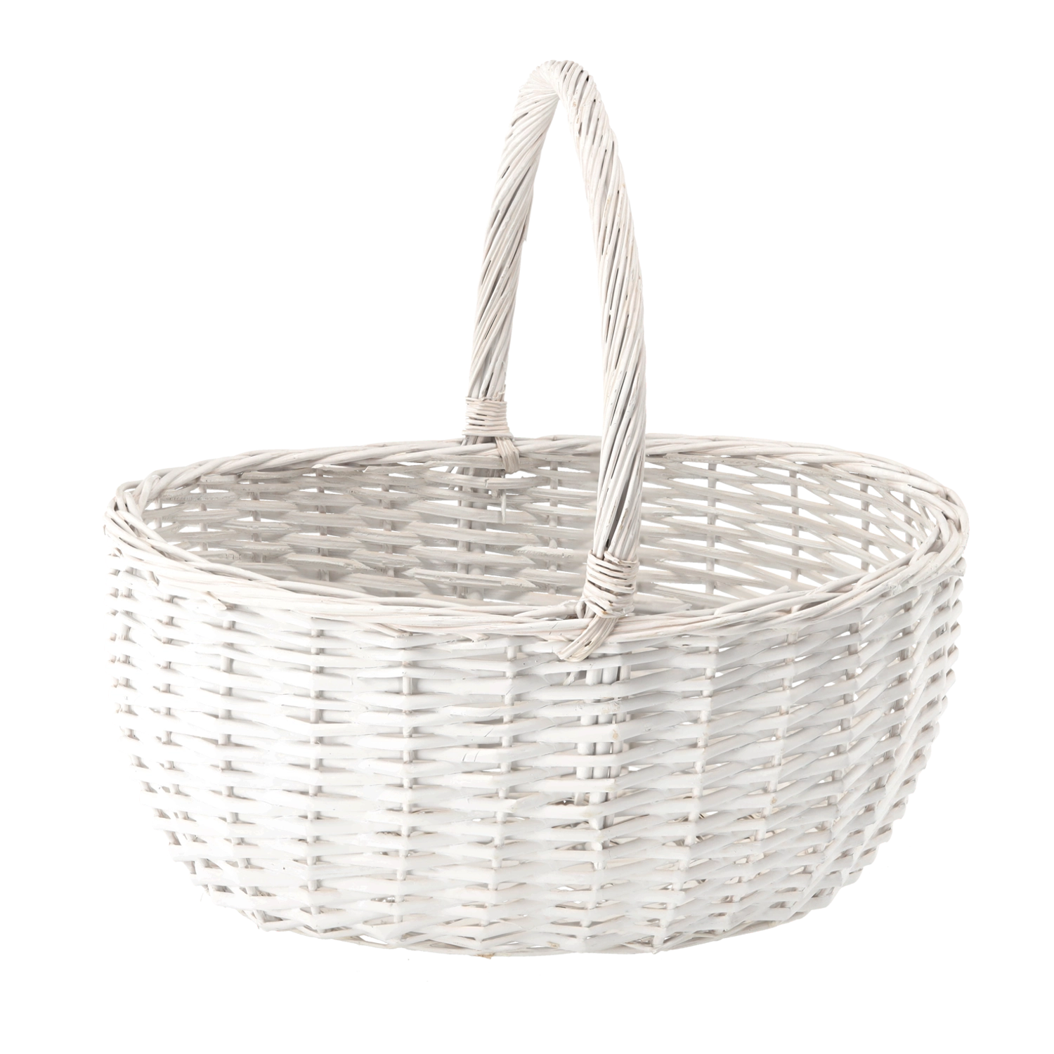 Koš je ročno pleten iz naravnega šibja in nato premazan z akrilno barvo na vodni osnovi – za privlačen videz, večjo odpornost in preprosto vzdrževanje. Brezčasna bela barva se poda tako sodobnim kot rustikalnim interierjem.