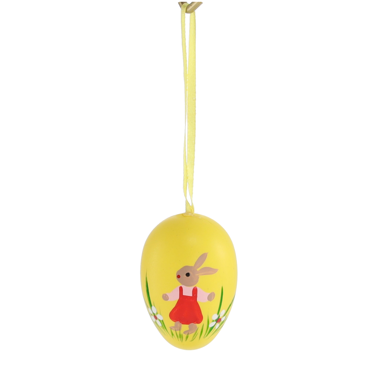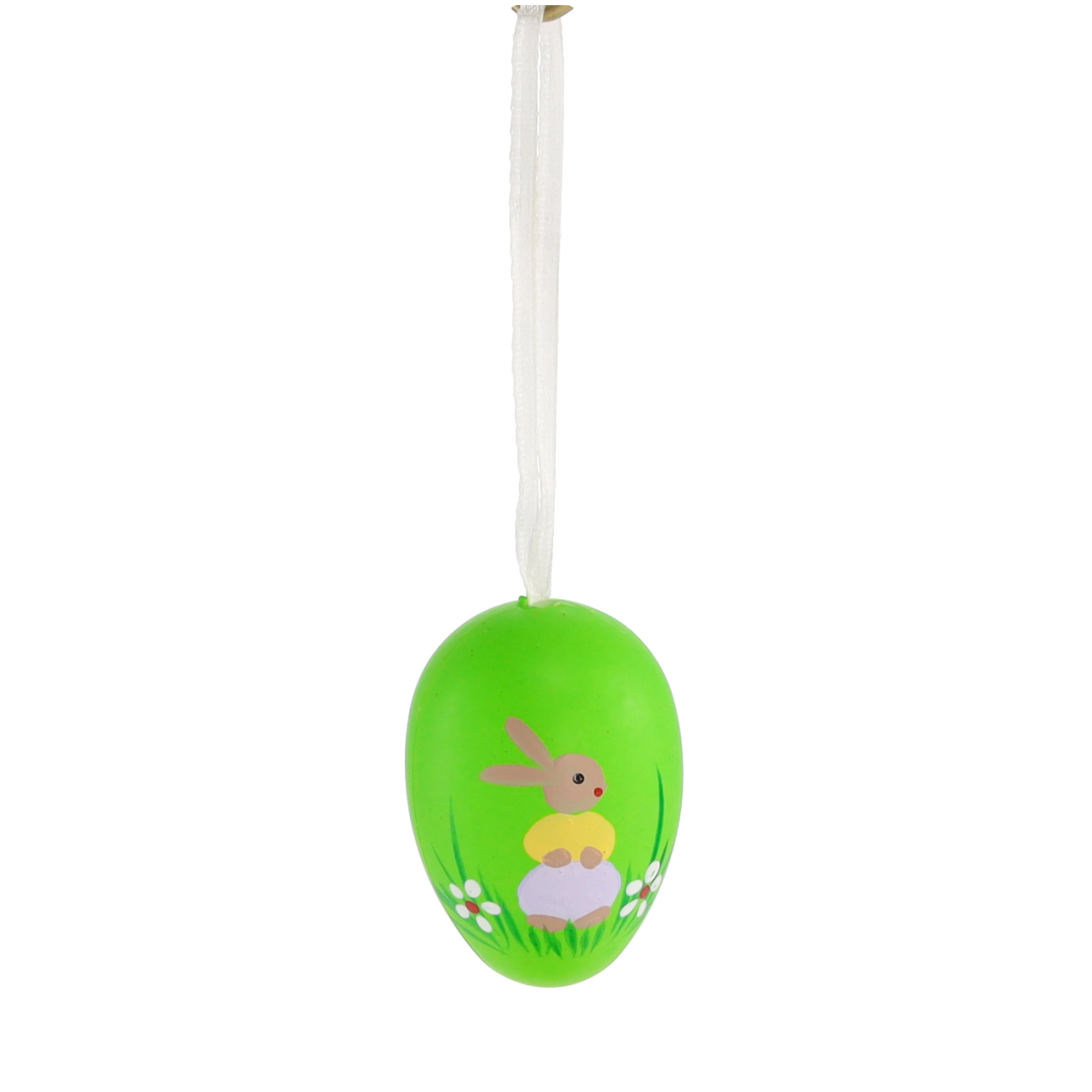 Ta eleganten komplet vsebuje 6 kosov plastičnih velikonočnih jajčk v velikosti 4 × 6 cm. Vsako je okrašeno s prikupnim motivom zajčka v travi in opremljeno s trakom za obešanje. Pastelni odtenki rumene, zelene in sivke poudarijo spomladansko razpoloženje ter se zlahka kombinirajo z drugo dekoracijo.