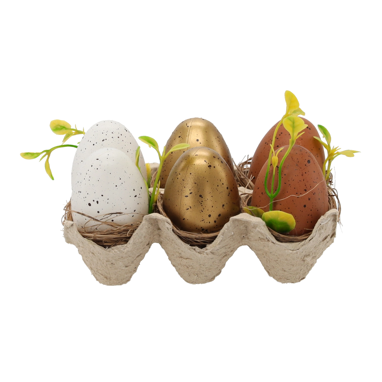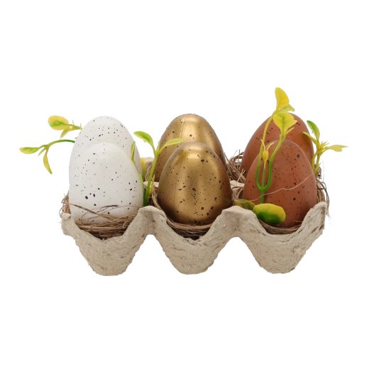 Ustvarite čarobne velikonočne dekoracije s setom šestih lahkih jajc v pastelnih odtenkih. Vsako jajce ima na spodnji strani odprtino s premerom približno 0,5 cm za enostavno namestitev na paličice ali žičke. Jajca so dobavljena v praktični embalaži, ki jo lahko takoj uporabite v aranžmajih. Idealno za vence, aranžmaje in otroško ustvarjanje.