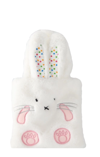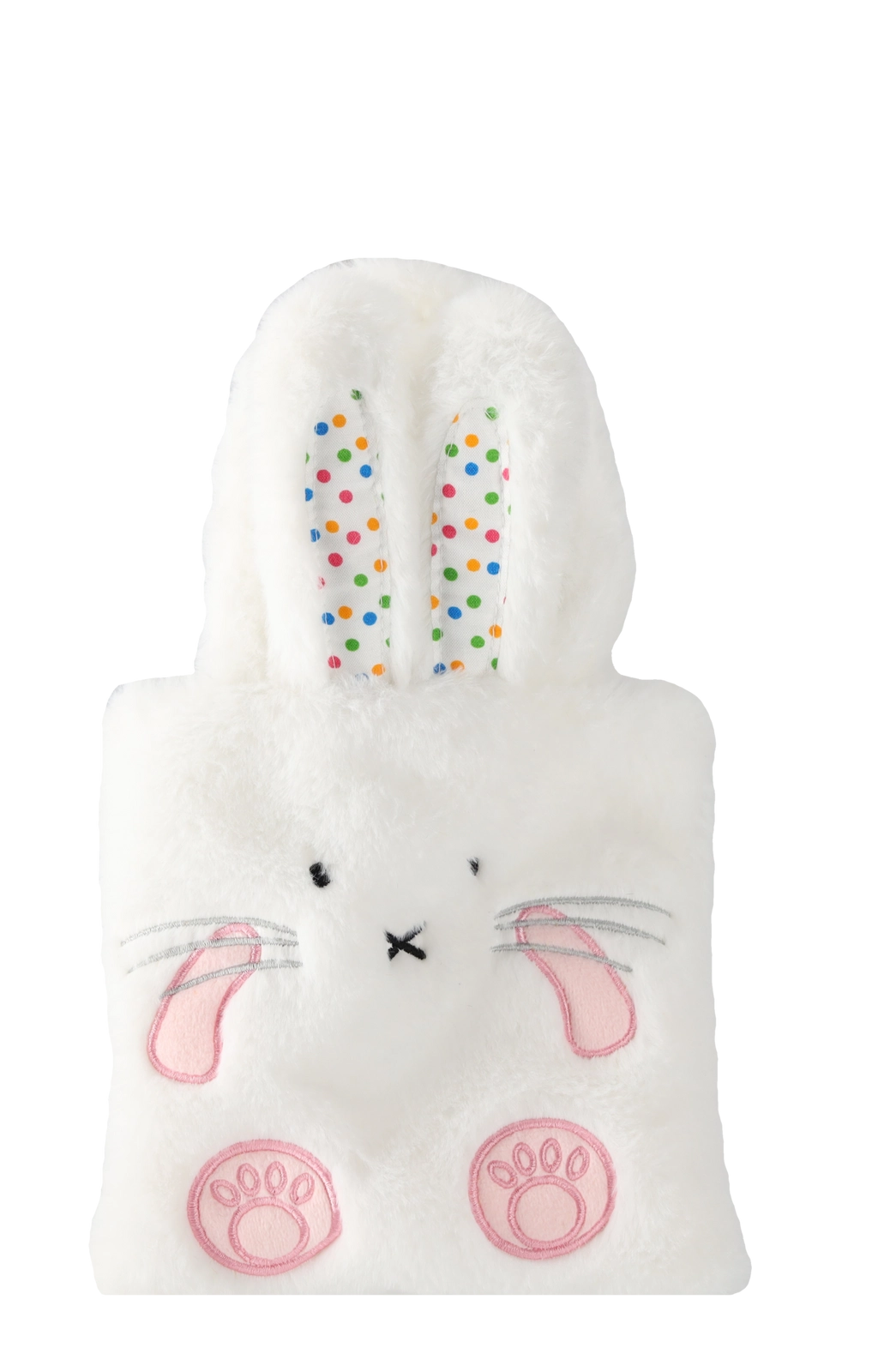 Bela plišasta različica z zajčjimi ušesi in nežnimi vezeninami je mehka, varna in kar vabi k pobožanju.