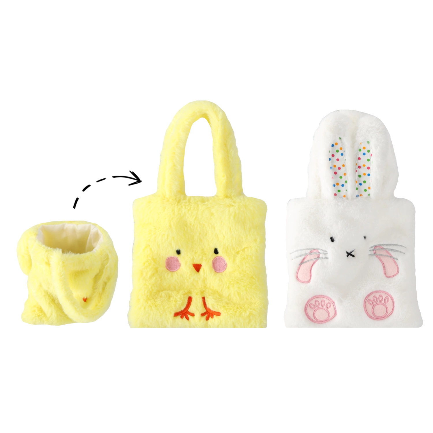 Ta stilska velikonočna torbica v podobi ljubkega piščančka ali zajčka je izdelana iz mehkega, prijetnega materiala, ki je na otip nežen in izjemno prikupen. Zaradi kompaktnih mer 16 × 16 cm je idealna za nabiranje jajčk, obdarovanje otrok z malenkostmi ali kot dekorativni dodatek velikonočni mizi.