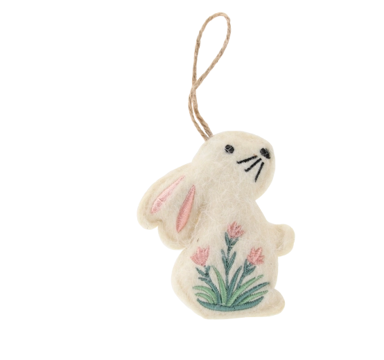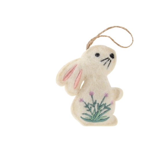 Ustvarite prijetno pomladno vzdušje z elegantnimi visečimi zajčki, ki zasijejo na vejah, mačicah, vencih, oknih in vratih. Mehak tekstilni material z nežno cvetlično vezenino deluje naravno in domače, zato se lepo poda k številnim dekorativnim slogom – od rustikalnega do skandinavskega.