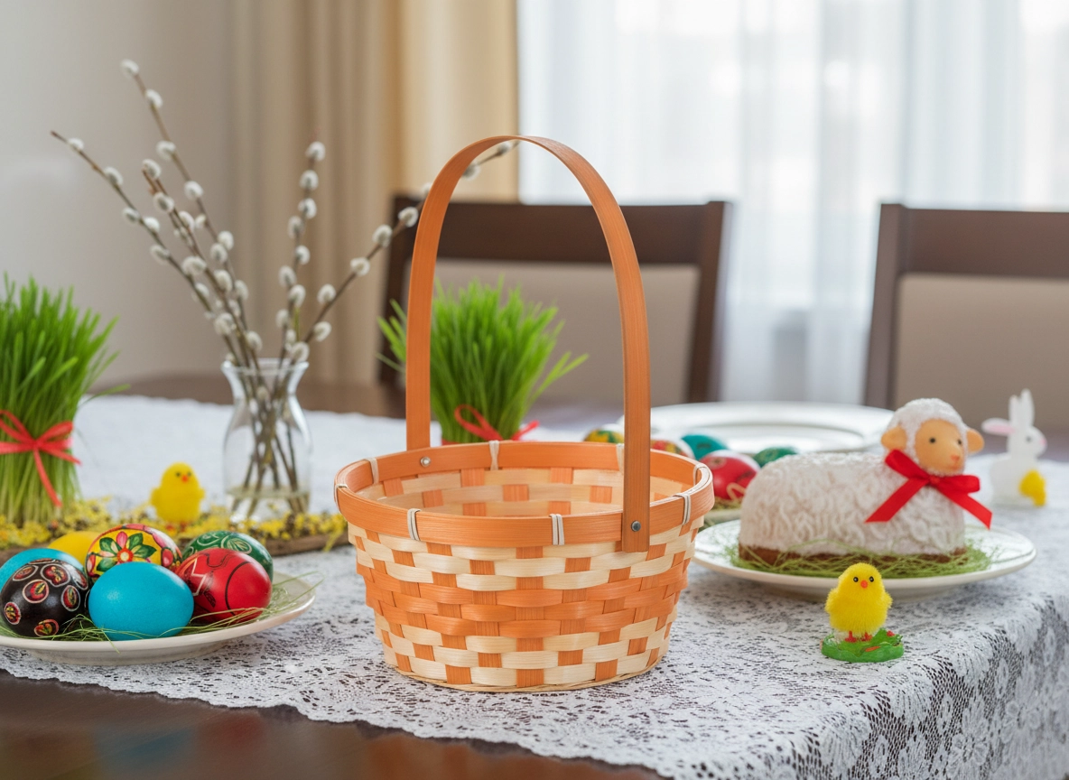 Popestrite velikonočno dekoracijo s praktično košarico z vzdržljivim, nastavljivim ročajem. Zlahka se prenaša, ima zračno pletenje ter deluje nežno in elegantno. Odlično služi otrokom in odraslim pri koledovanju, kot stilski dekor na mizi ali kot darilna embalaža za dobrote.