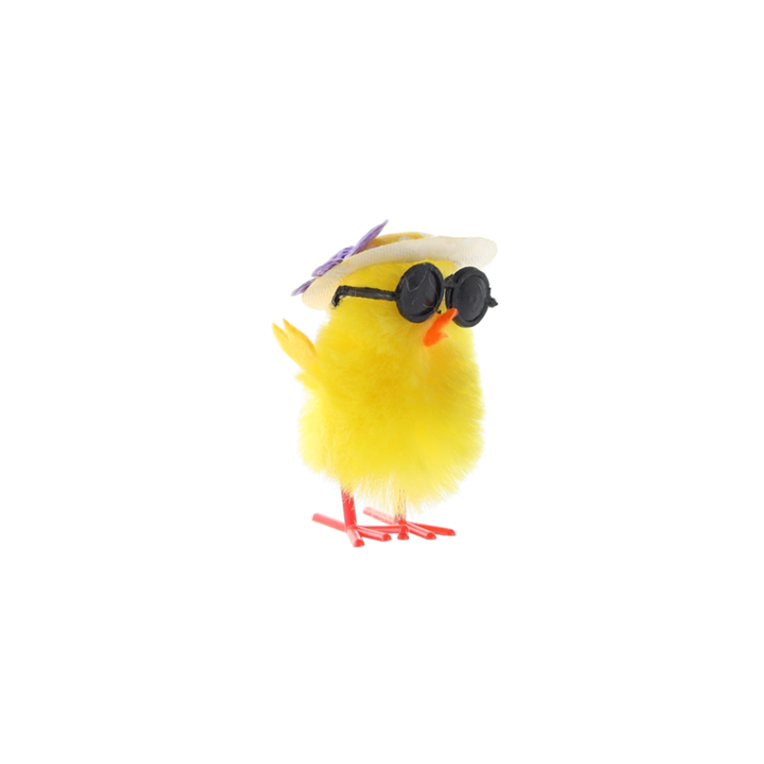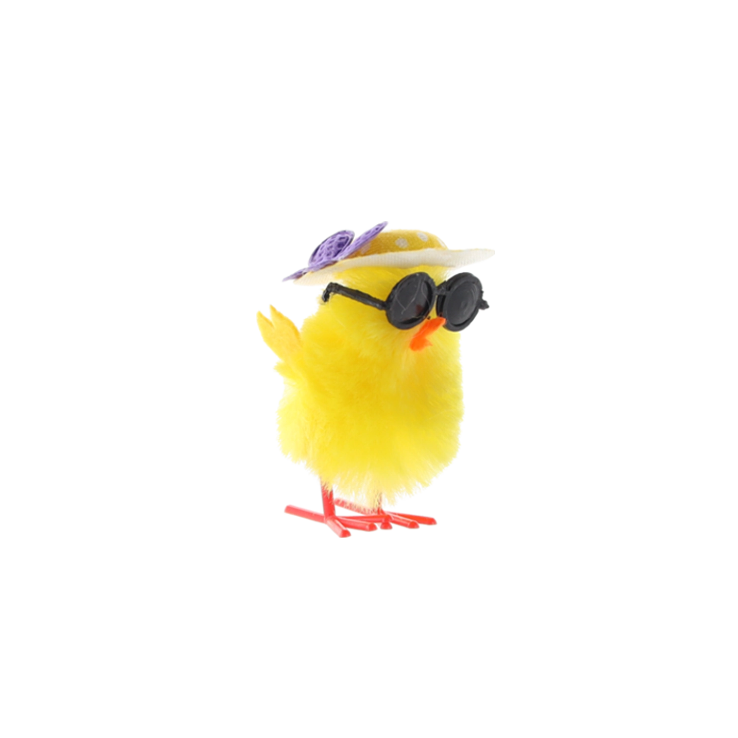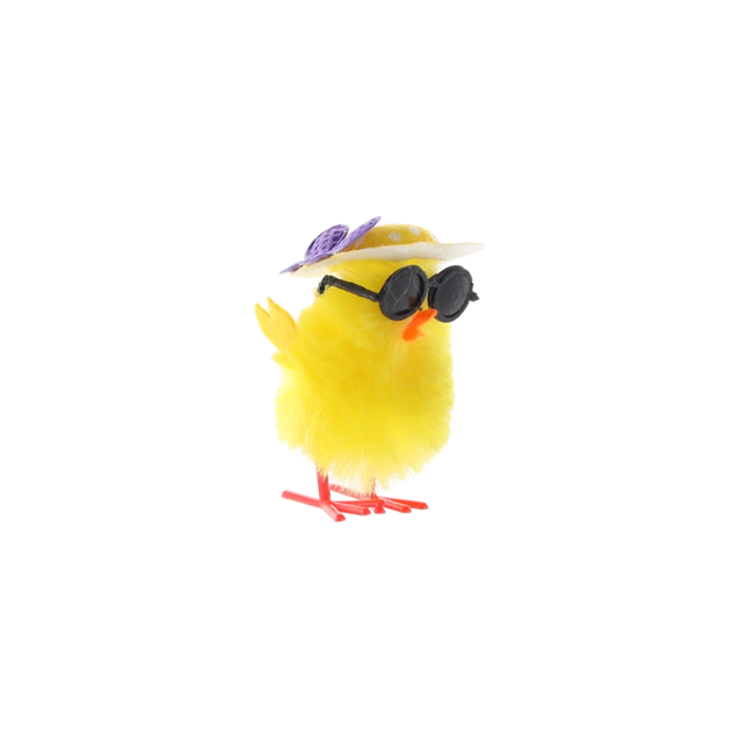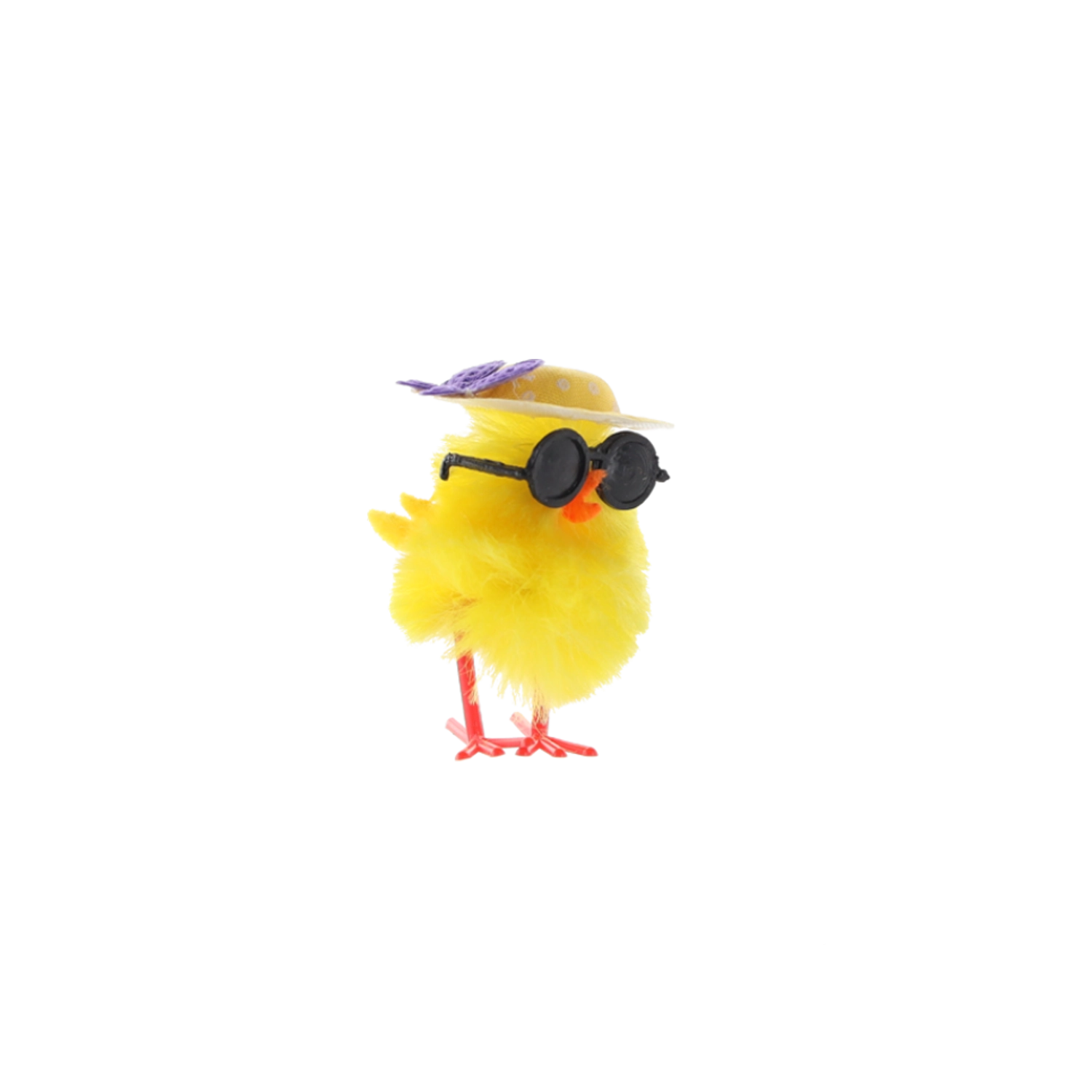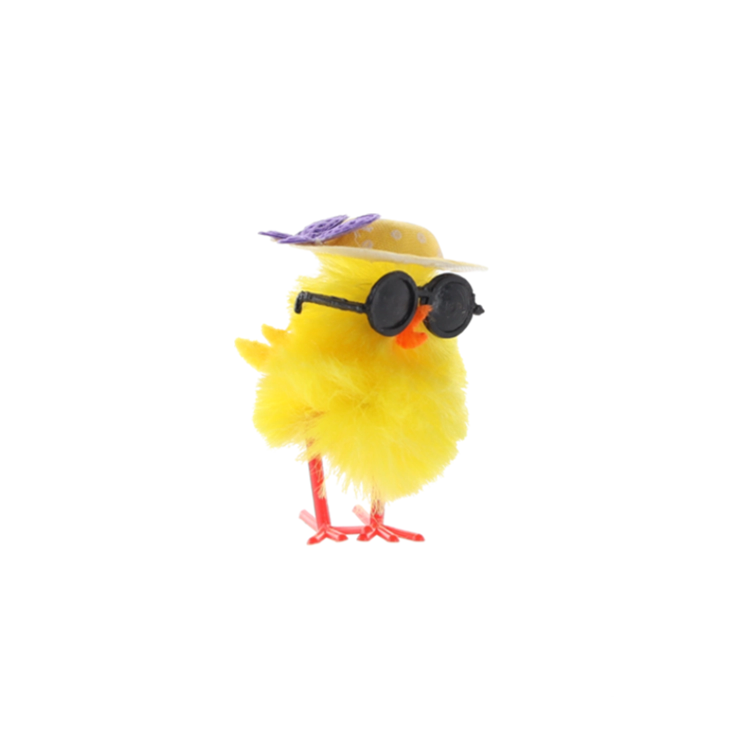 Črna okrogla sončna očala in stilski klobuček piščančkom dodajo edinstven šarm – popoln poudarek za vsak velikonočni aranžma.