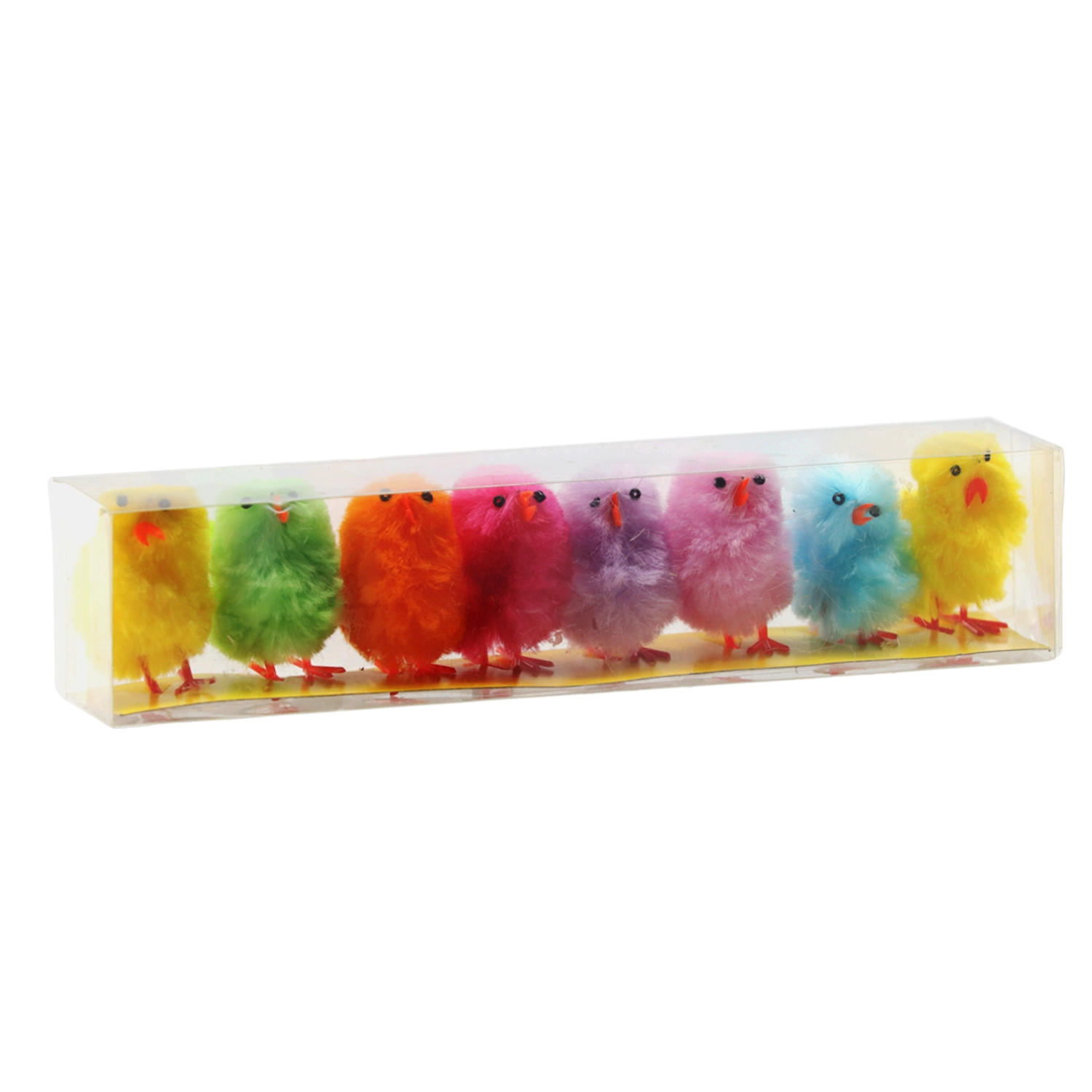 Vnesite igrivo vzdušje v svoje velikonočne okrasitve z nizom osmih barvitih piščančkov. Vsak kos ima rahlo puhast površinski sloj, droben kljunček in oranžne nogice za stabilno postavitev. Odlično se podajo na mize, police in v spomladanske dekoracije.