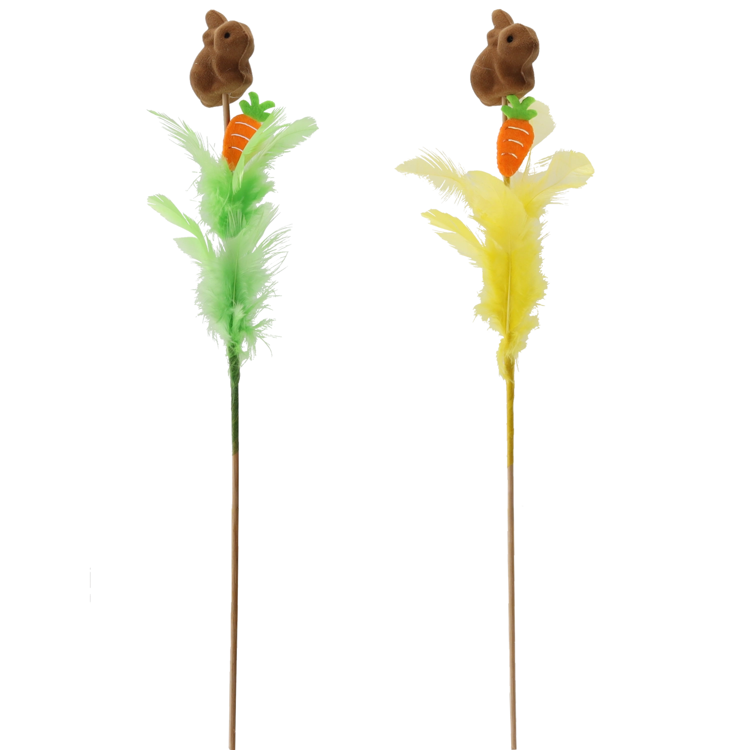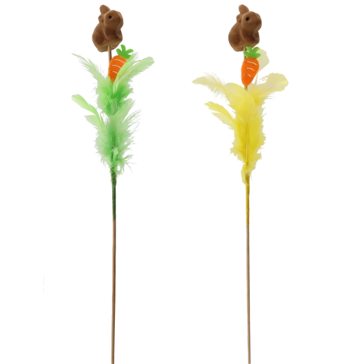 Popestrite spomladansko dekoracijo s čudovitim zapičem Zajček s peresci višine 30 cm. Zahvaljujoč lesenemu zatiču ga zlahka vstavite v cvetlične aranžmaje, venčke in dekoracije. Lahkotna peresca dodajo nežnost in zračnost, dve barvni različici pa omogočata usklajevanje v harmonične kompozicije. V pakiranju je 12 kosov – idealno za večje projekte ali deljenje z družino.