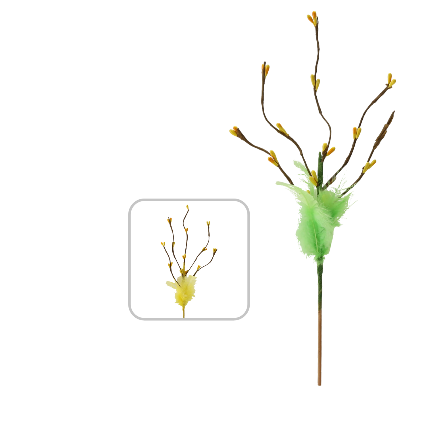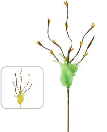 Elegantna velikonočna vejica na piku dolžine 32 cm je stilski dodatek za vaše praznične aranžmaje. Odlično izstopa v vazah, cvetličnih dekoracijah in košaricah. Na voljo je v dveh barvnih različicah za preprosto usklajevanje z okrasitvijo. Izdelana je iz kakovostnih sintetičnih materialov, ki zagotavljajo dolgo življenjsko dobo in odpornost, zaradi lahke konstrukcije pa je z njo zelo enostavno delati.