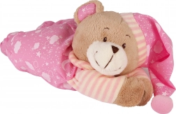 Ta srčkani medvedek je odličen spremljevalec ponoči in podnevi. V rožnati pižami je prijatelj, ki vam nikoli ne uide, in je idealno darilo za naše najmlajše. Medvedek ne le da razvija otroško domišljijo, temveč ponuja možnost obešanja, zato ga lahko zlahka pritrdite na otroško posteljico ali voziček. Predvaja pomirjujočo uspavanko »Dober večer, lahko noč«, ki bo vašemu otroku pomagala lažje zaspati.