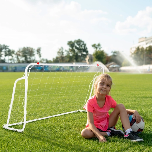 Namestitev traja le nekaj minut – gol omogoča preprosto montažo in demontažo, mreža se pritrjuje s trdnimi sponkami, del kompleta pa so tudi klini za sidranje v tla. Konstrukcija je odporna na deformacije in vremenske vplive, zato gola ob poslabšanju vremena ni treba razstavljati.