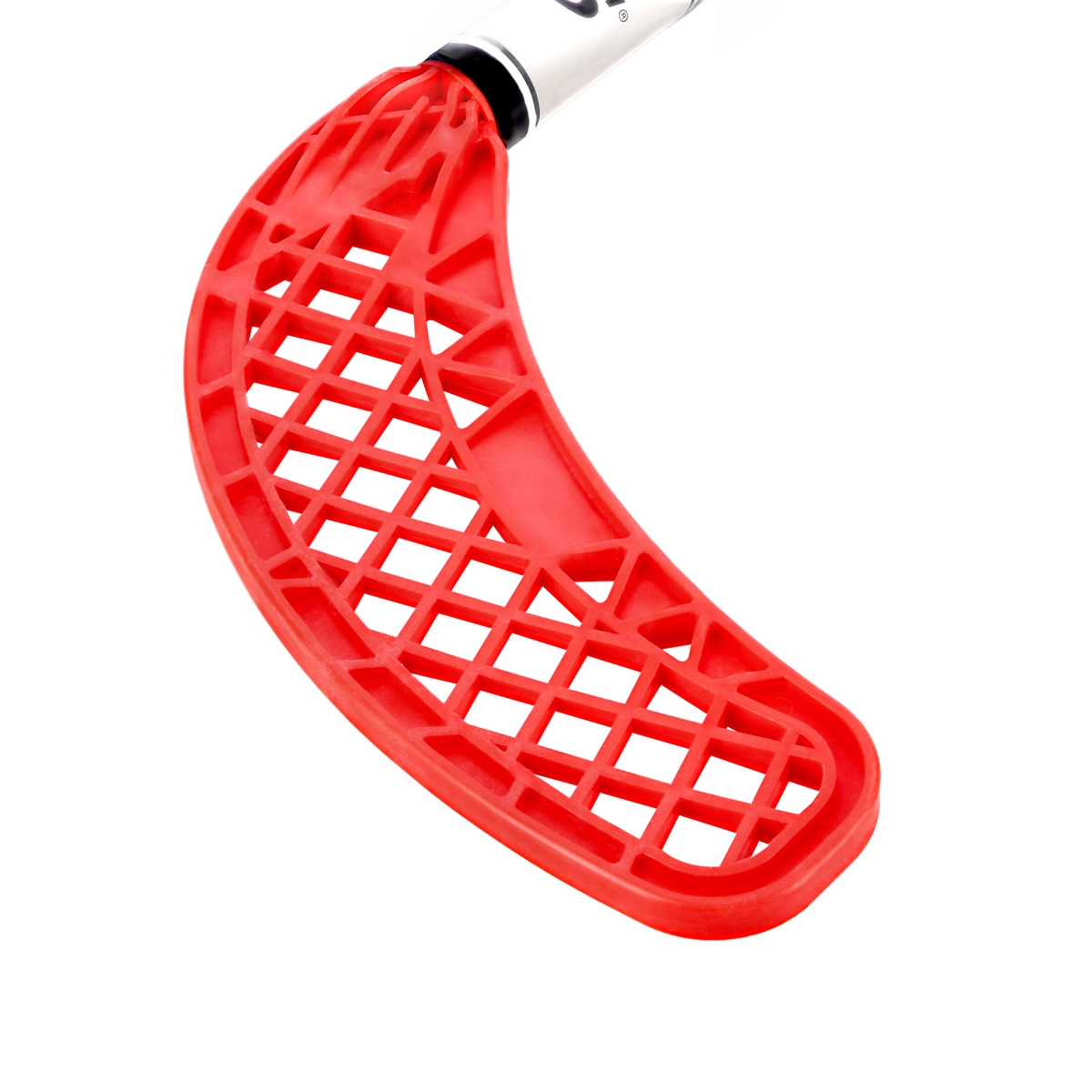Polipropilenska konstrukcija z ergonomskim zaključkom za zanesljiv oprijem in boljši nadzor nad žogico – idealno za prve korake v floorballu.