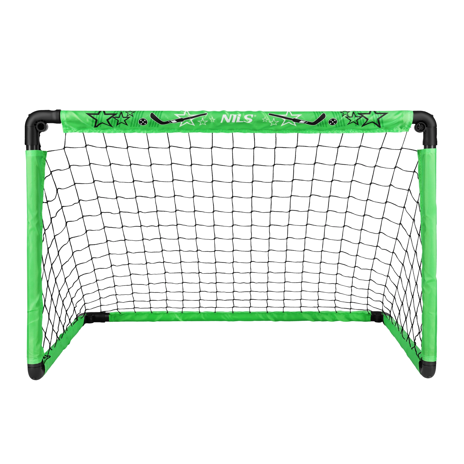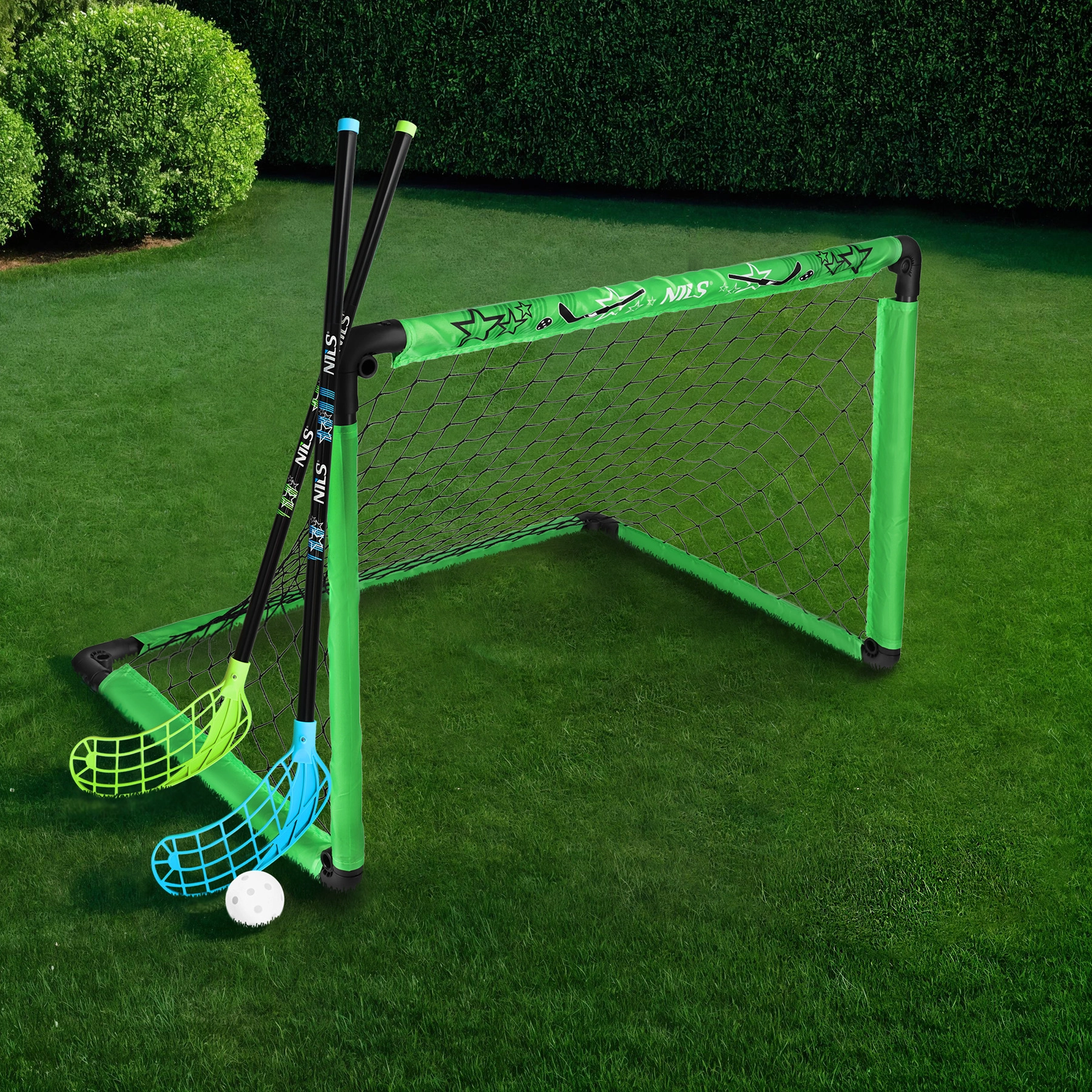 Komplet NILS BRH2521 prinaša vse, kar potrebujete za takojšnje florbalne dvoboje. Praktičen zložljiv gol izstopa s stabilno konstrukcijo in po zlaganju zavzame minimum prostora, zato ga z lahkoto prenašate in shranjujete. Dve palici z ravno lopatico (90 cm) ustrezata desničarjem in levičarjem, žogica s premerom 6,35 cm pa je pripravljena za igro takoj po razpakiranju.