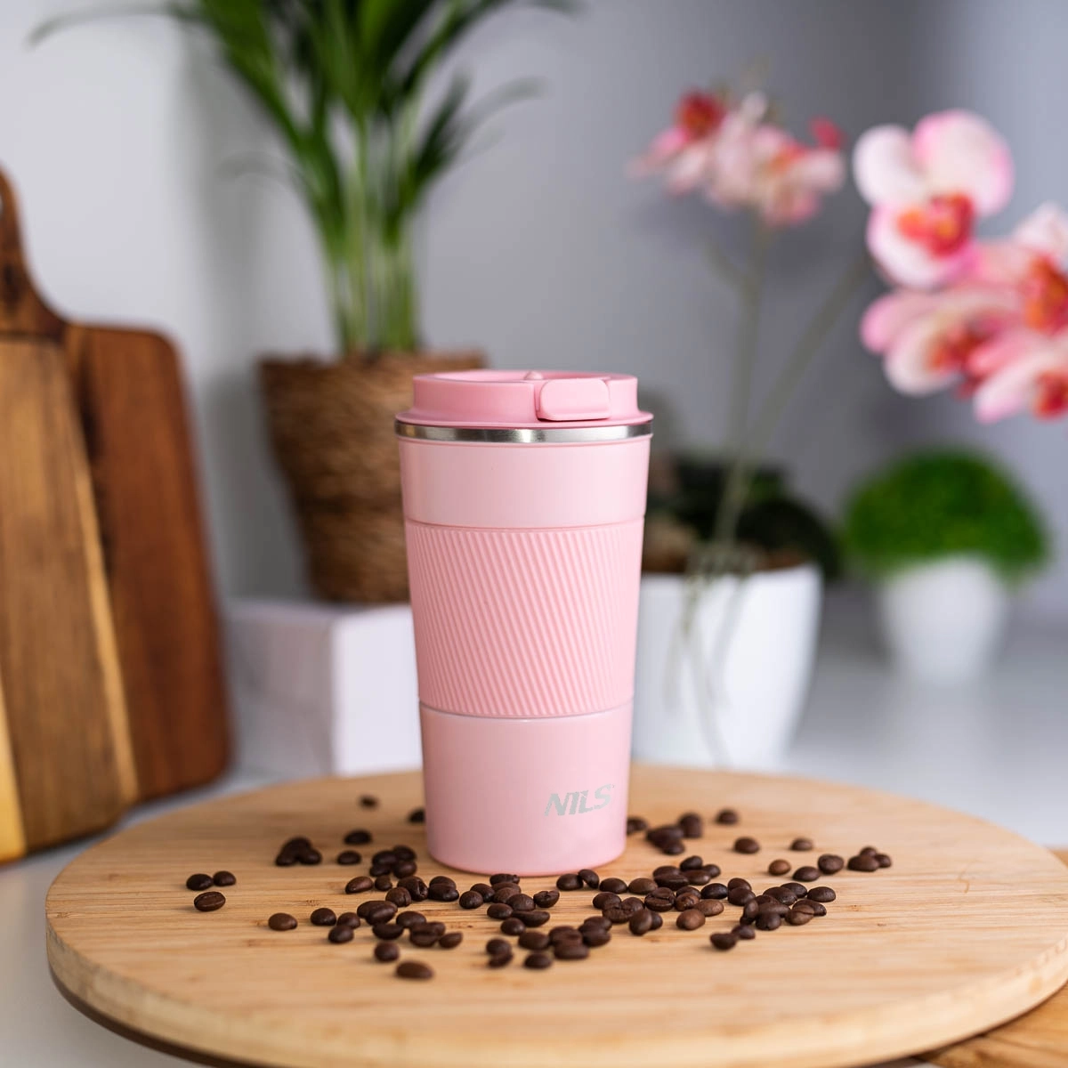 Priljubljen potovalni termovonec v elegantni rožnati barvi je izdelan iz nerjavečega jekla z dvojno steno, ki zanesljivo drži temperaturo. Zaradi pametnega sistema pokrova je dovolj, da potisnete od spodaj, pokrov se odpre in lahko uživate v kavi ali čaju brez nepotrebnega razlivanja. Silikonsko tesnilo v pokrovu dodatno zmanjšuje uhajanje tekočine, ko je lonček zaprt.