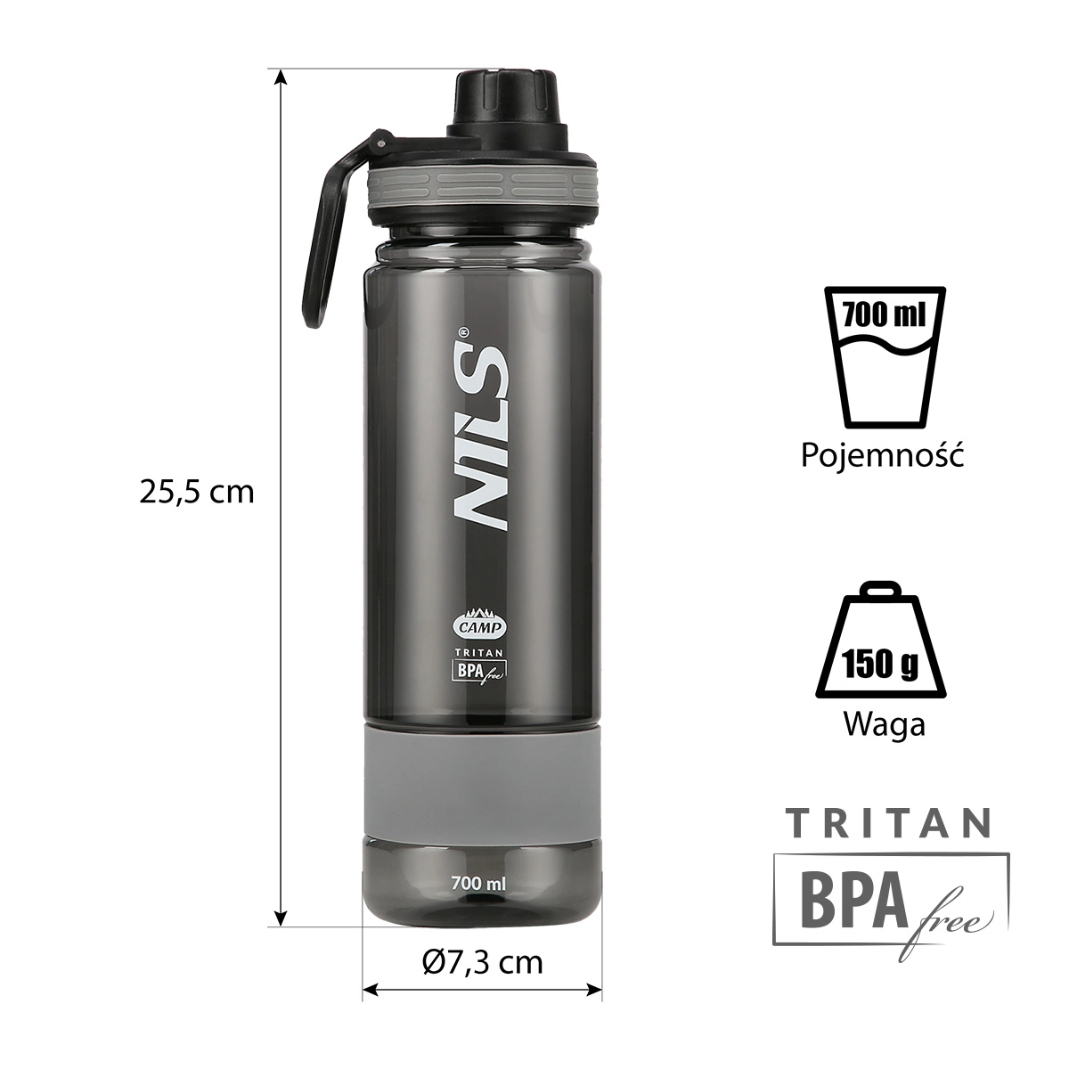 Steklenica je izdelana iz vrhunskega tritana, ki je lahek, žilav in v napitek ne sprošča nezaželenih snovi ali priokusov.