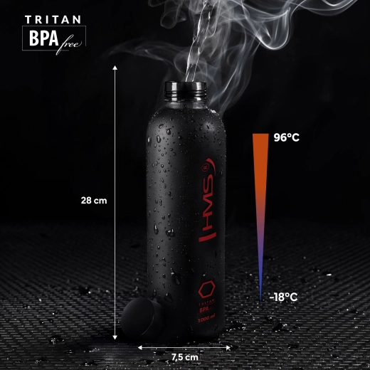 Varen, stilski in tesen pokrov zagotavlja, da se pijača ne polije v torbi ali nahrbtniku. Grlo z idealno širino omogoča hitro pitje brez politja ter enostavno dolivanje vode ali ledu. Tritan brez BPA je varen za zdravje, ne zadržuje vonjav in okusov, zahvaljujoč odpornosti pa steklenica dolgo ohrani svež videz. Vzdrževanje je enostavno – steklenico lahko pomivate v pomivalnem stroju.