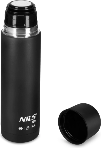 Praktična termovka NILS Camp v elegantni črni barvi je odlična izbira za vsakodnevno uporabo in aktivnosti na prostem. S kapaciteto 500 ml ponuja dovolj vašega najljubšega napitka, ne da bi po nepotrebnem obremenjevala nahrbtnik. Dvojna stena iz nerjavečega jekla zagotavlja zanesljivo izolacijo – toploto do 12 ur, hlad pa do 24 ur.