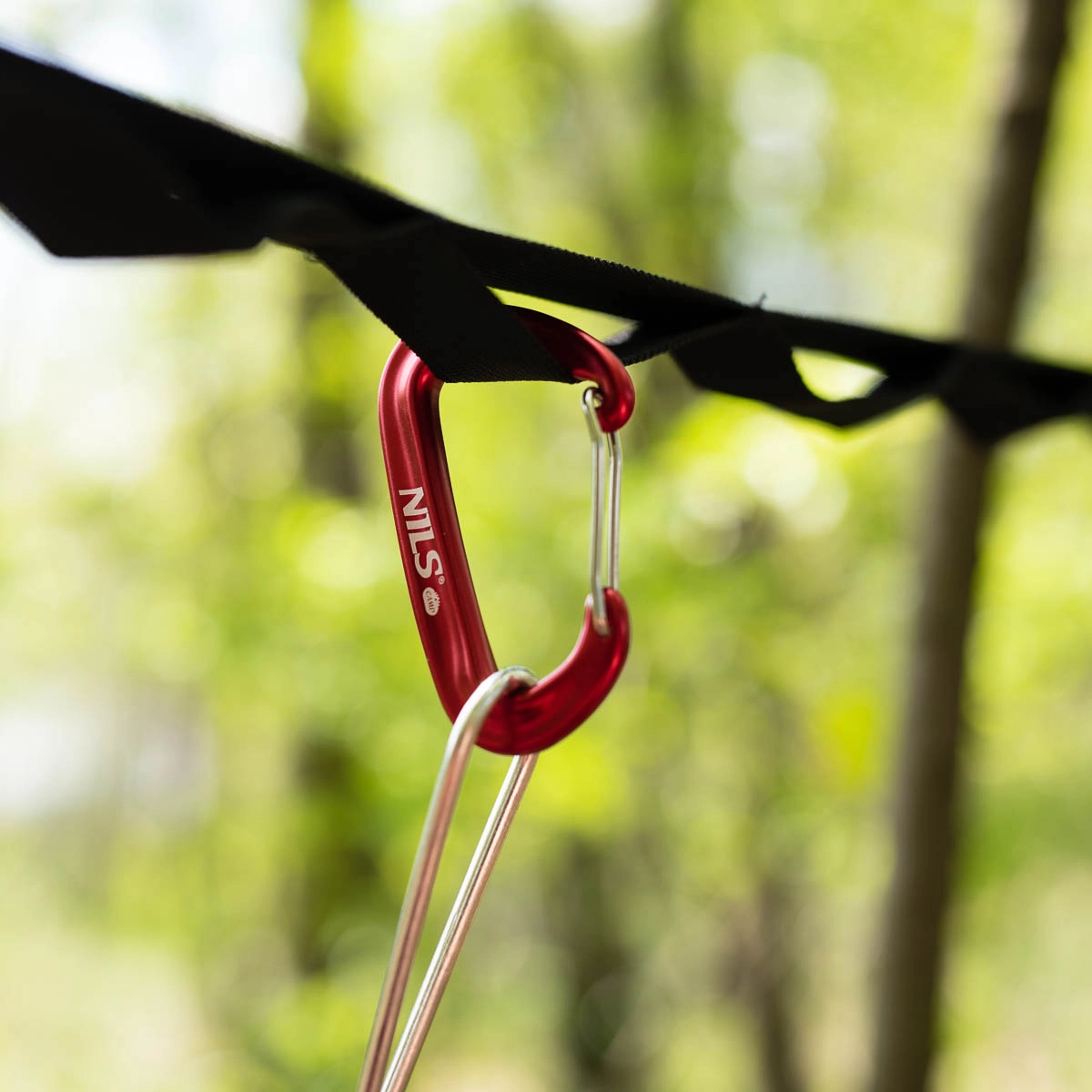 Eleganten rdeč dizajn z logotipom NILS in ergonomsko D-obliko zagotavlja udobno rokovanje. Anodizacija ščiti pred oksidacijo, zato vponka ostane dolgoročno funkcionalna in estetska tudi pri pogosti uporabi na prostem.