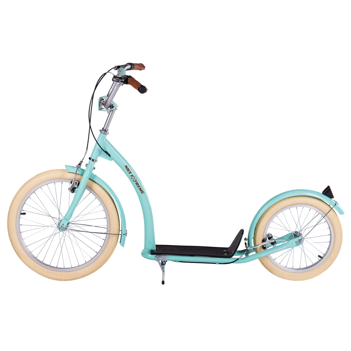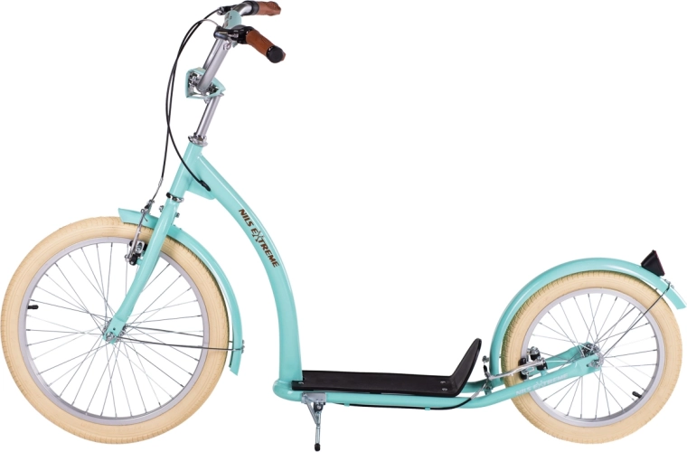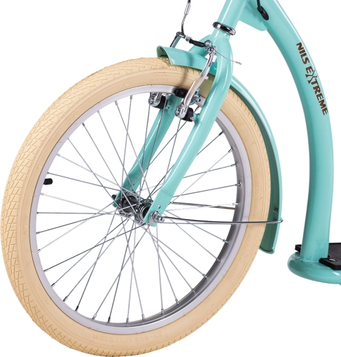 Skiro NILS Extreme WH222 v mentol barvi je zasnovan za udobna in varna premikanja po mestu in zunaj njega. Velike pnevmatske gume na aluminijastih obročih ublažijo neravnine, medtem ko jeklen okvir zagotavlja trdnost in dolgo življenjsko dobo. Sprednje 20" in zadnje 16" kolo povečujeta stabilnost, prehodnost terena in zanesljivost v ovinkih.