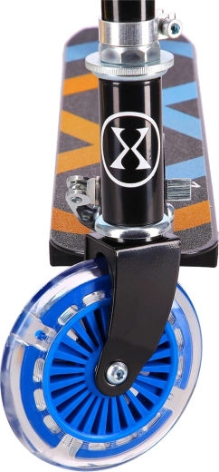 Lahek in trpežen zložljiv skiro za otroke in mladostnike z LED osvetljenimi kolesi in osvetljeno platformo. Ponuja višinsko nastavljivo krmilo v 4 položajih, hitro zlaganje za enostavno prenašanje in gladko vožnjo zahvaljujoč ležajem ABEC 5. Idealen za asfalt in utrjene pločnike, z nosilnostjo 50 kg in maso le 2,3 kg.
