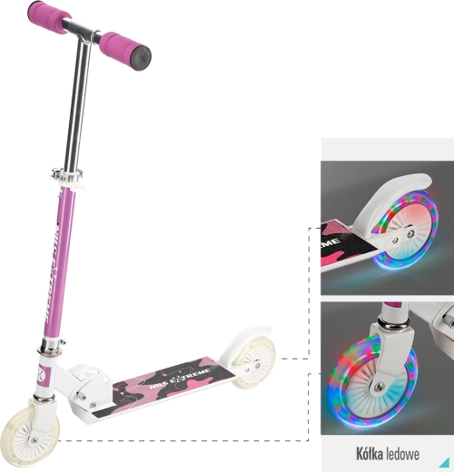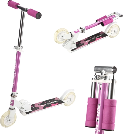 Roza zložljiv skiro NILS Extreme HD505 je zasnovan za mlade voznike, ki želijo združiti zabavo, udobje in varnost. Zahvaljujoč poliuretanskim koleščkom s premerom 120 mm omogoča gladko in tiho vožnjo po ravnih površinah, medtem ko lahko aluminijasto ohišje in možnost zlaganja olajšata prenašanje ter shranjevanje.