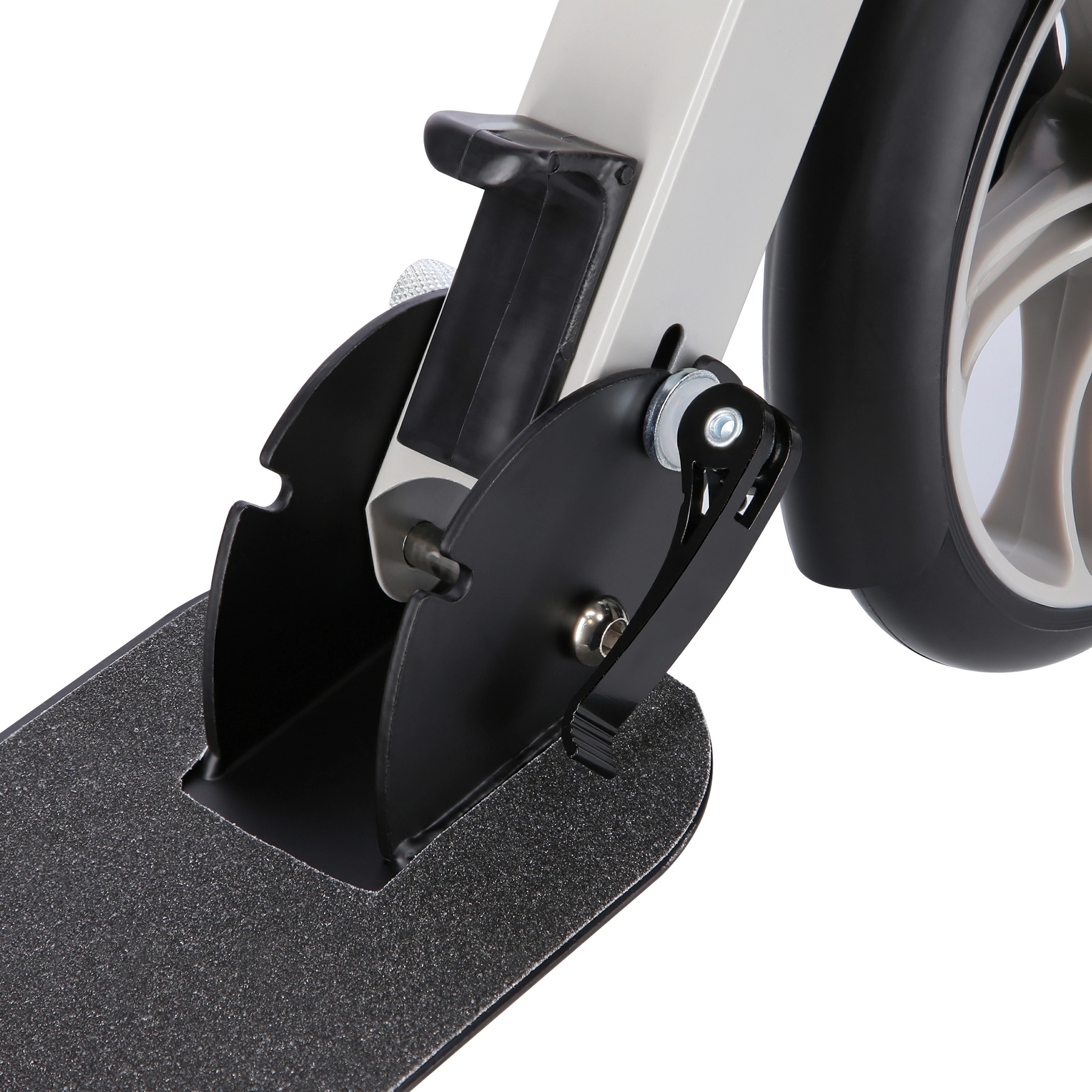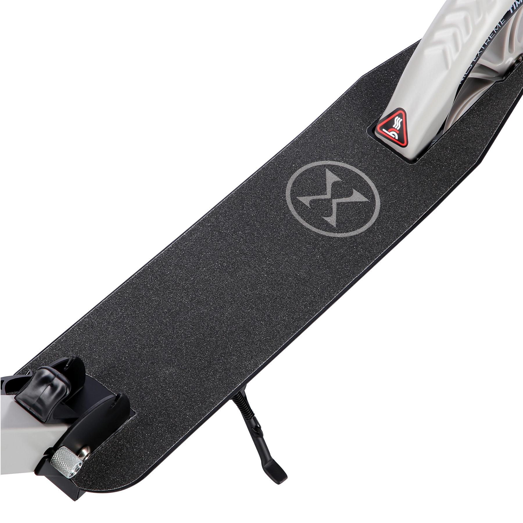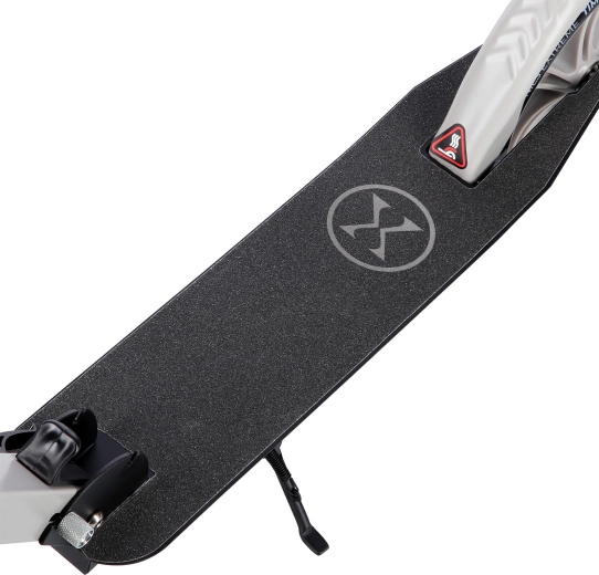 Protizdrsen oprijem na deski povečuje stabilnost, zadnji blatnik pa služi kot učinkovita stopalna zavora za varno ustavljanje.
