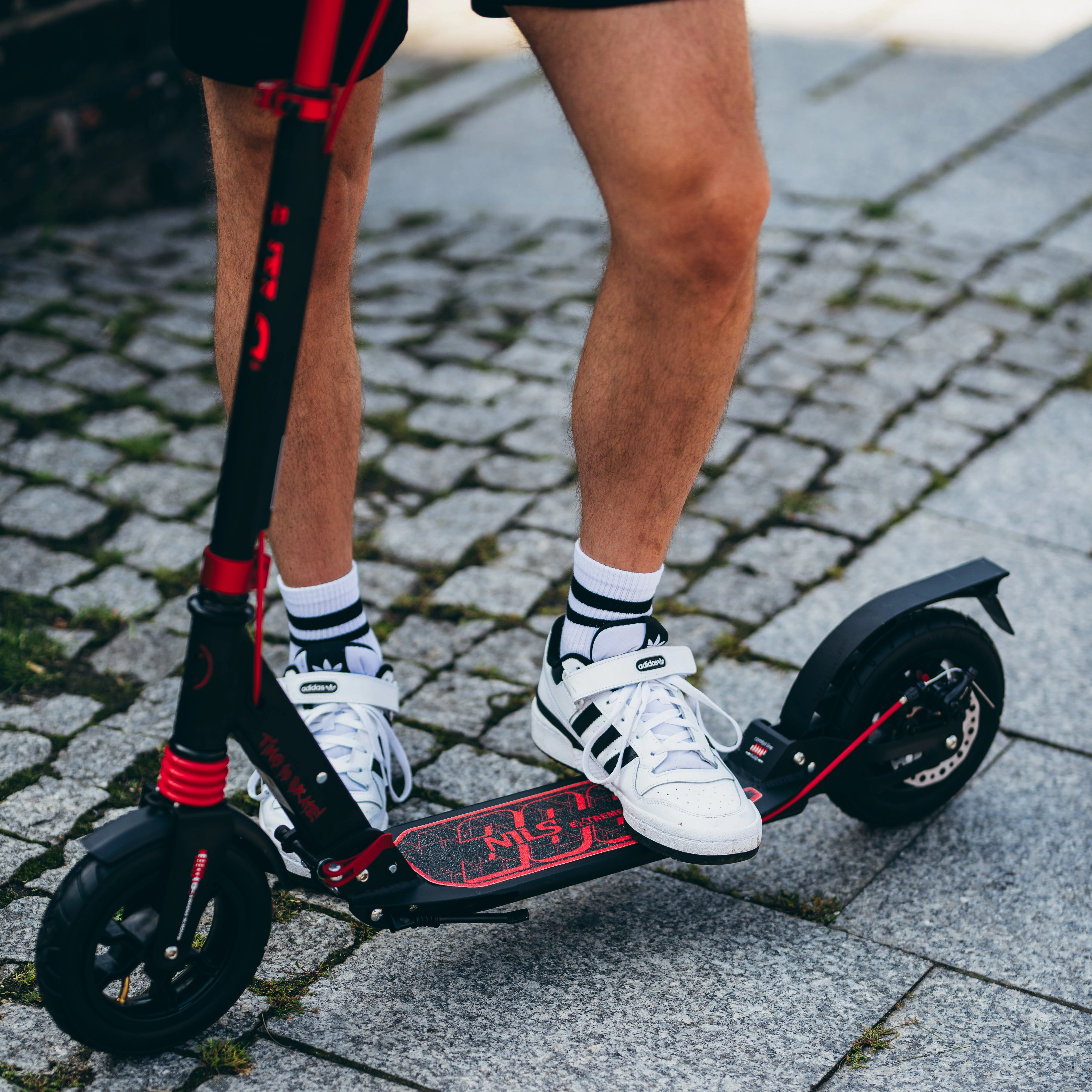 Skiro NILS Extreme HM209T je idealna izbira za mestne voznike, ki iščejo kombinacijo udobja, varnosti in kompaktne zasnove. Napihljive pnevmatike premera 200 mm v povezavi s sprednjim in zadnjim vzmetenjem blažijo neravnine in zagotavljajo tekočo vožnjo. Ležaji ABEC9 prispevajo k lahkotnemu in tekočemu odrivu, medtem ko široka aluminijasta platforma 61 × 15 cm z griptape premazom nudi zanesljiv oprijem in stabilnost.