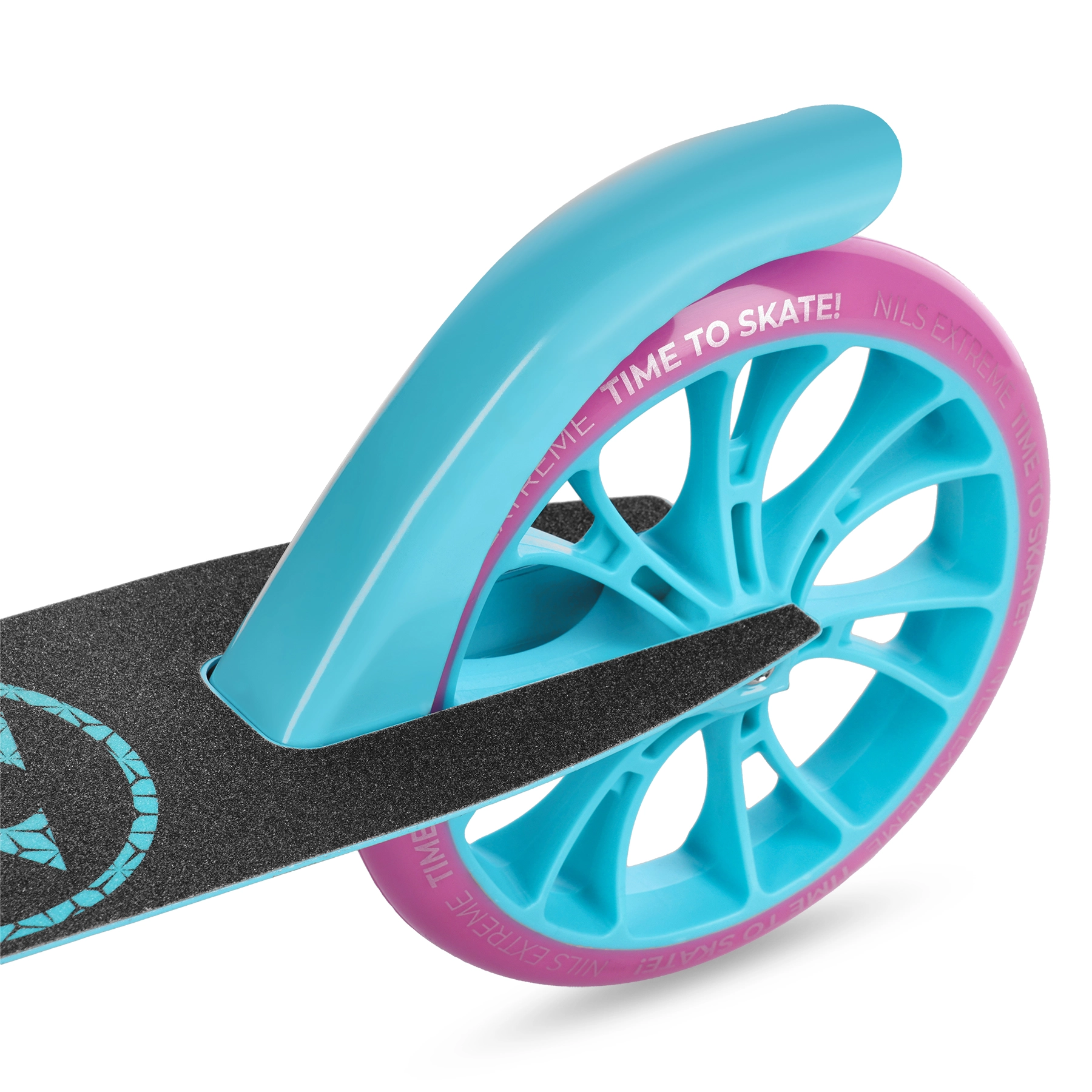 Skiro NILS Extreme HM1302 je idealna izbira za mesto. Velika kolesa s premerom 200 mm s polipropilenskim pestom in poliuretanskim plaščem zagotavljajo stabilnost, blaženje neravnin in zanesljiv oprijem na asfaltu in tlaku. Ležaji ABEC-7 zmanjšujejo trenje, zato se skiro zlahka požene in brez napora ohranja tempo.
